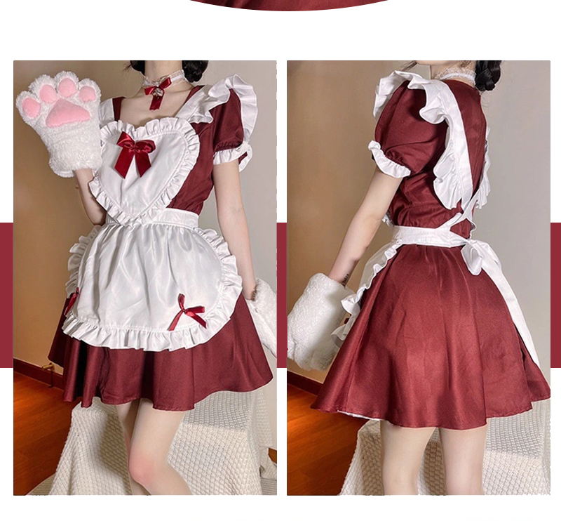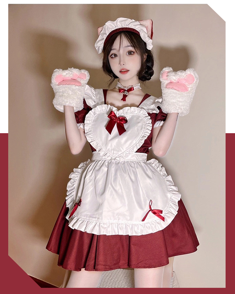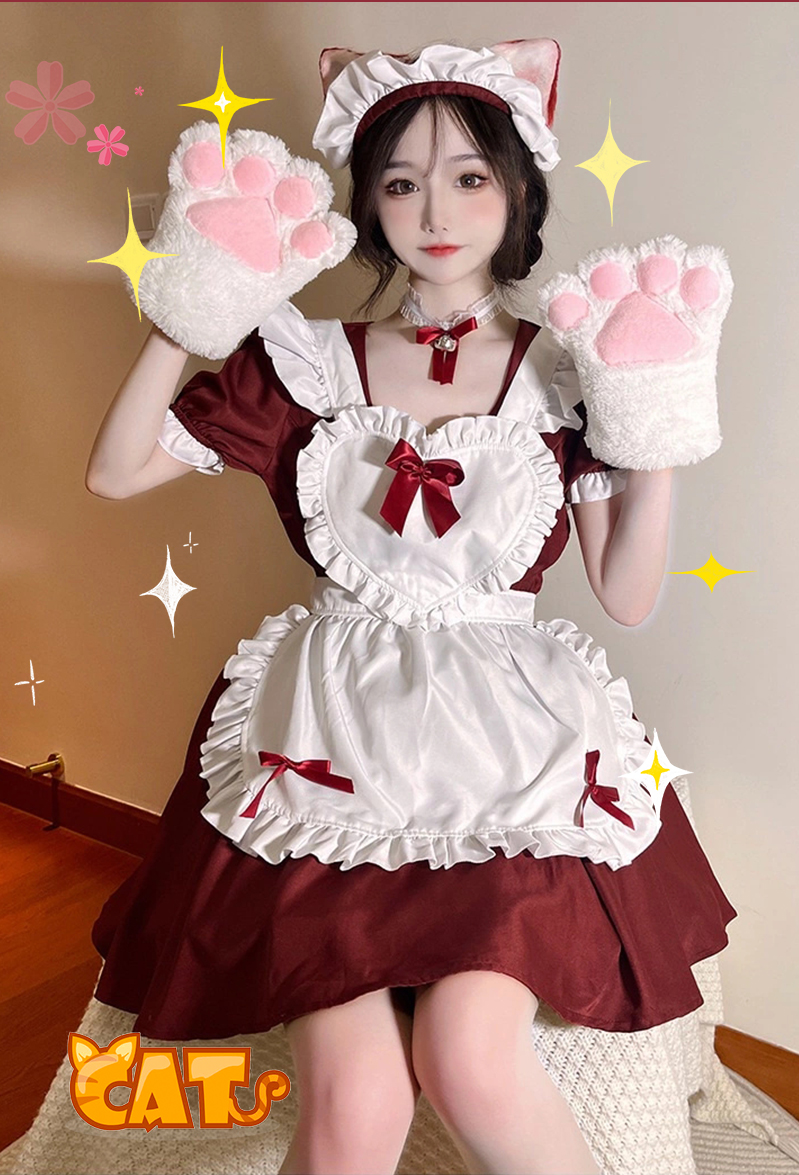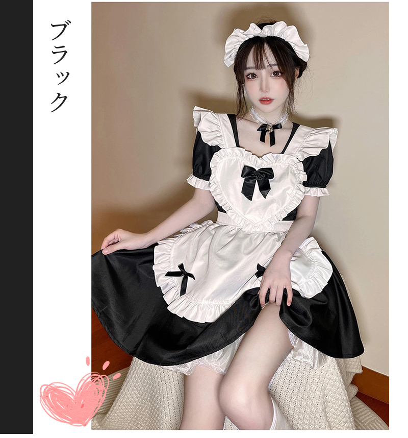 コスプレ衣装とし大人気、胸元ハートの猫耳メイド服。リボン&フリルが沢山付いた可愛いデザインです。ワンピースは普段着として他の服とコーデするのも可愛い。