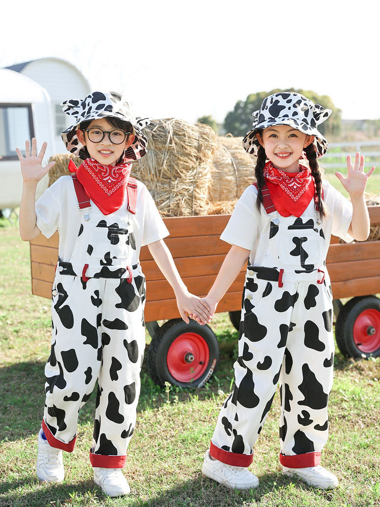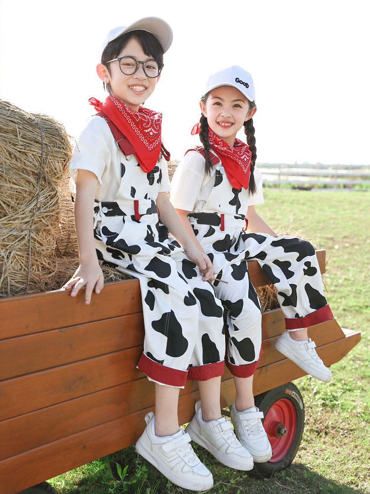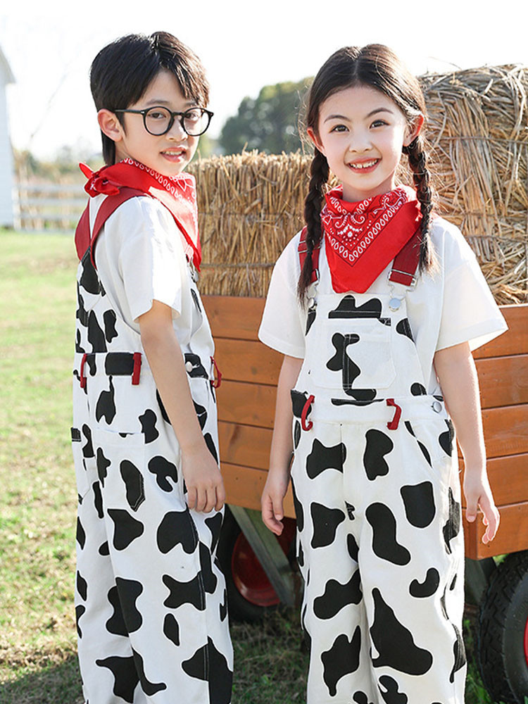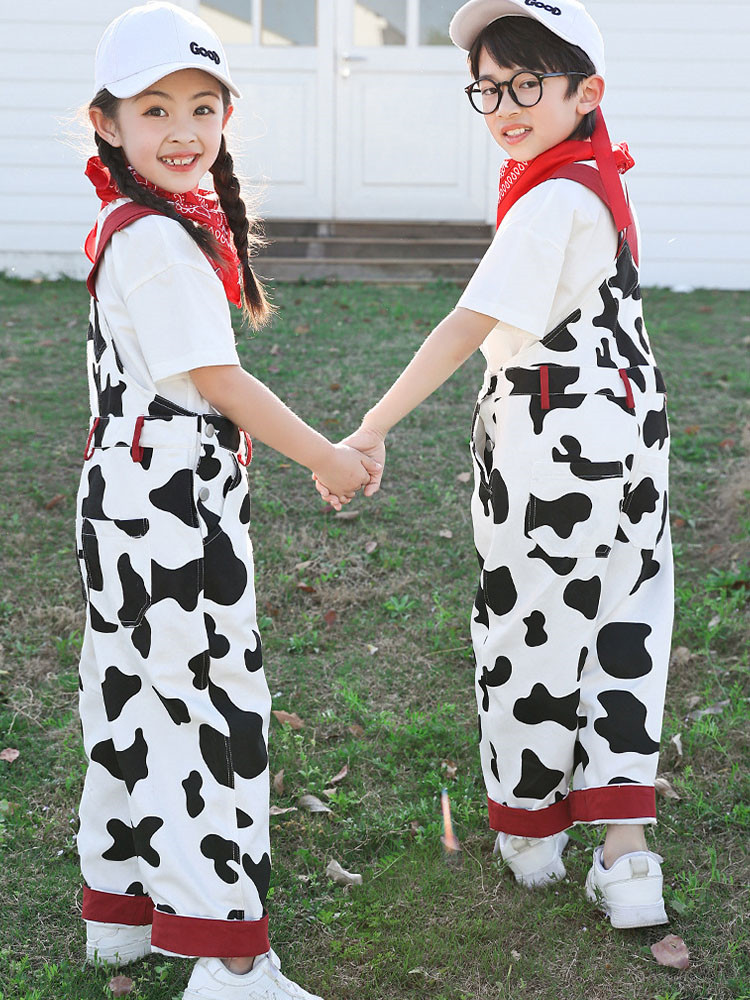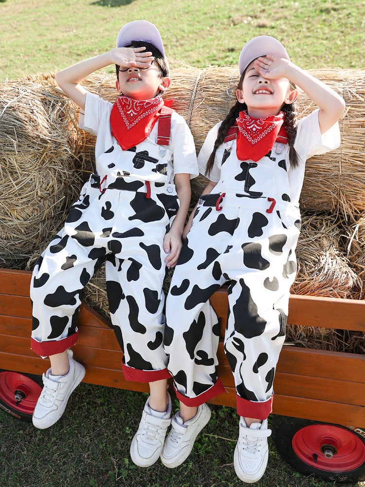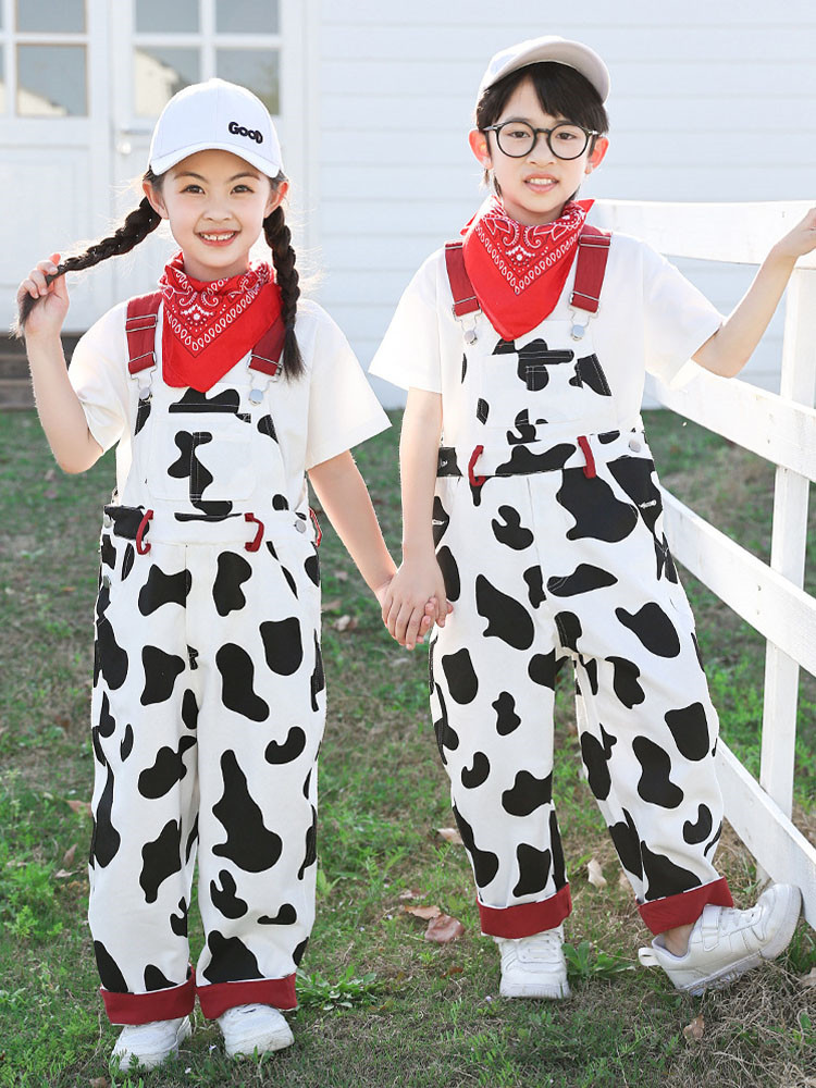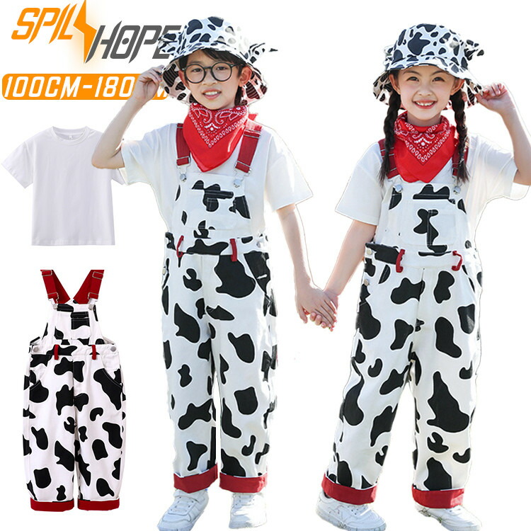 総柄 白黒 オーバーオール Tシャツ キッズ スーツ カジュアルセットアップ カジュアルパンツセット 続々登場 オーバーオール オーバーオール+Tシャツ オーバーオール4点セット 100cm 110cm 120cm 130cm 140cm 150cm 160cm 170cm 180cm