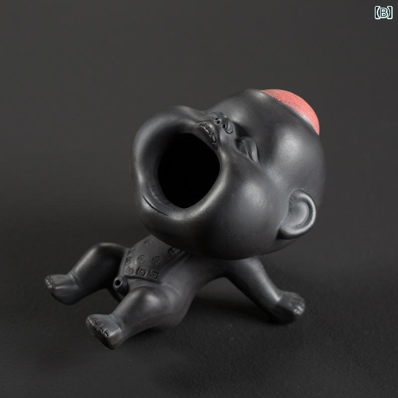 茶寵 紫砂 噴水 置物 小便小僧 ユニ キッチン用品 食器 調理器具 新作 A:赤土-おしっこ人形 B:黒土-おしっこ人形
