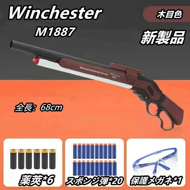 おすすめポイント 【子供、大人向けシューティングゲーム】お子様の冒険心をくすぐる「M1887ショットガン風おもちゃ銃」は、安全なスポンジ弾を使用した排莢式の発射機能を備え、リアルな排莢再現が可能です。このおもちゃ銃は、レバーアクションによる連発式機能を採用しており、子供たちがアクティブに遊べる設計となっています。木目調のデザインが美しく、手に取るだけでワクワクするような外観です。