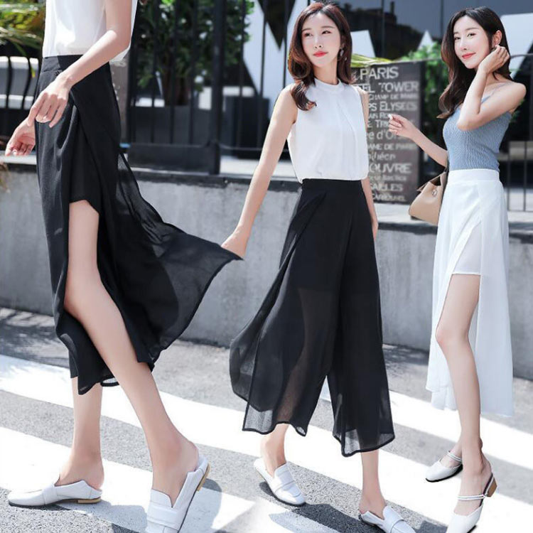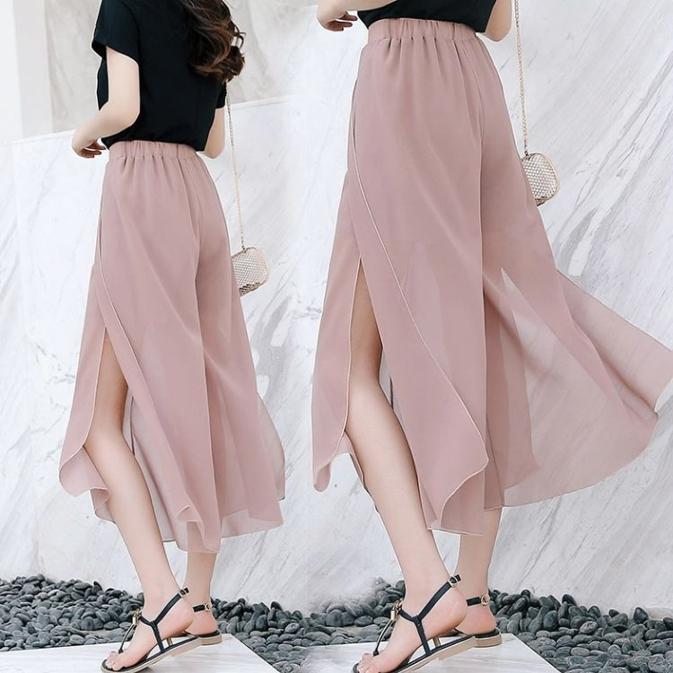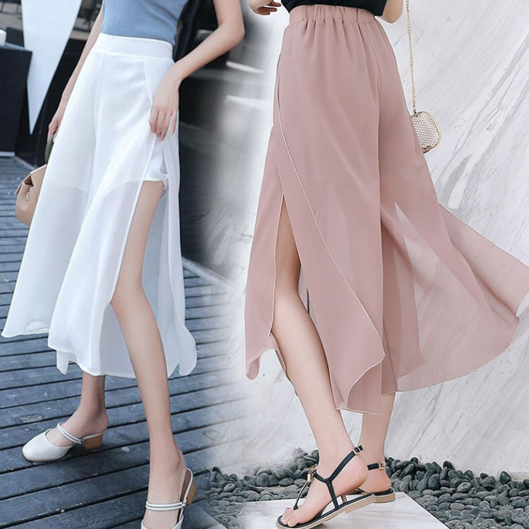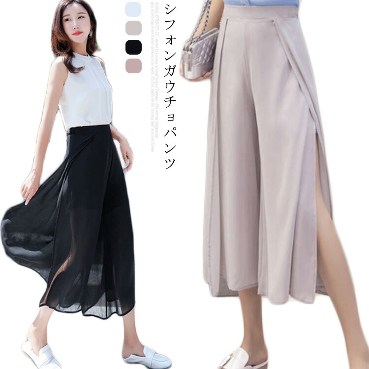 シフォン ガウチョパンツ ワイドパンツ ボトムス パンツ 続々登場 ホワイト ライトグレー ブラック ピンク S M L XL 2XL 3XL