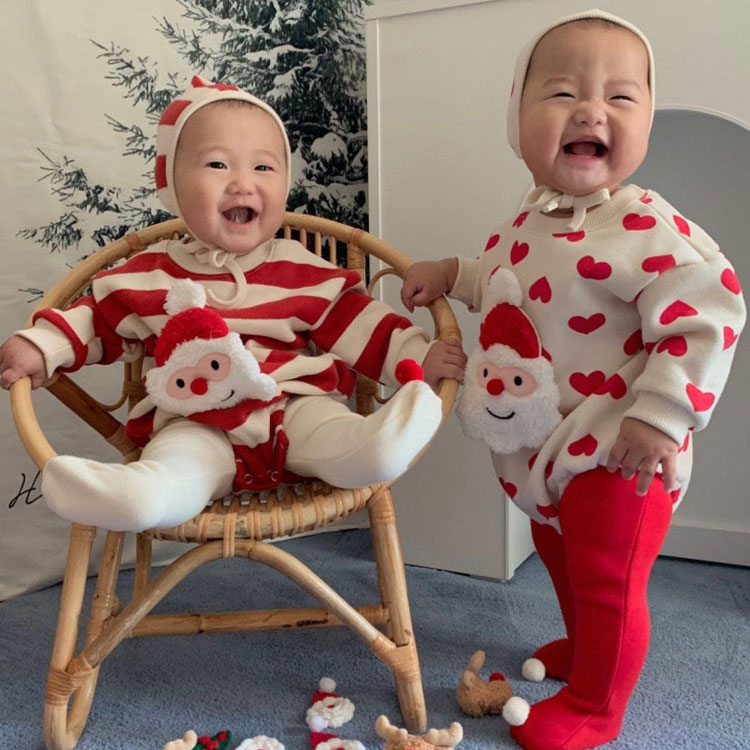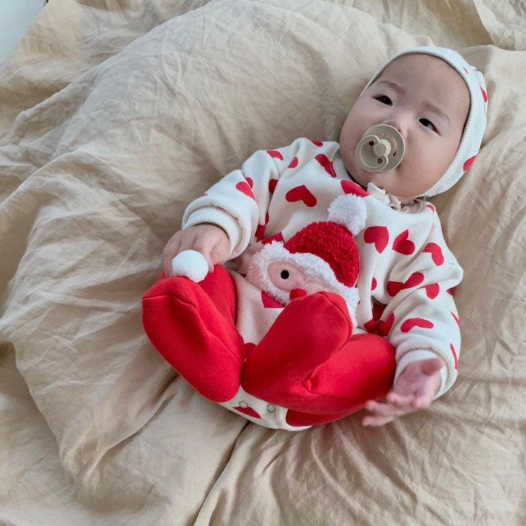 クリスマス衣装 ベビー サンタクロース ベビー ベビー服 ファッション カバーオール ロンパース 人気 ストライブ柄 ハート柄 66cm 73cm 80cm 90cm