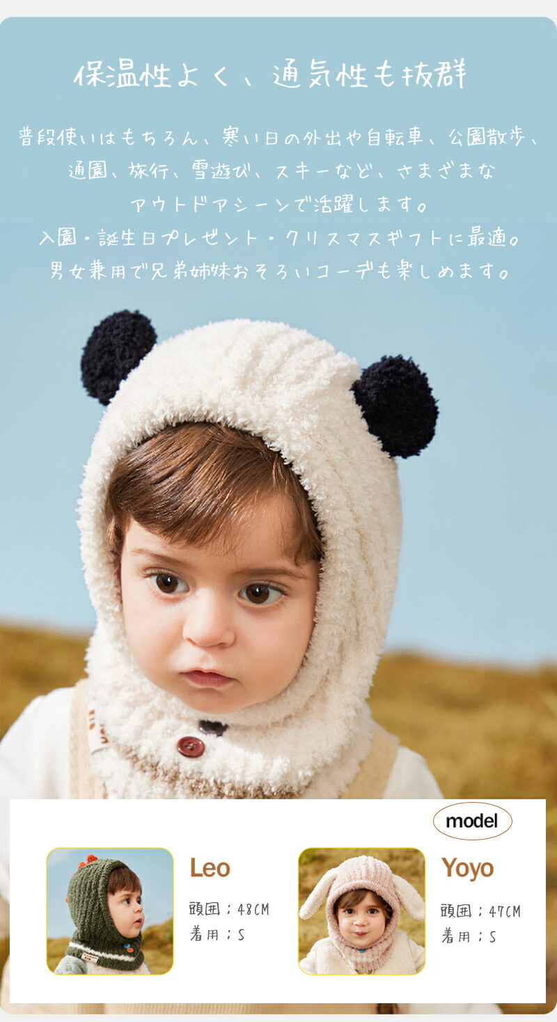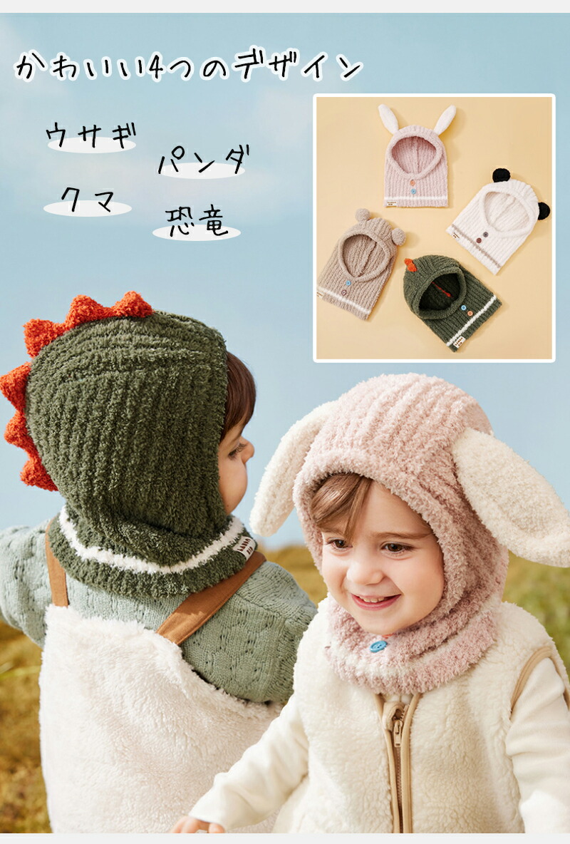 フードウォーマー 帽子 ベビー 秋冬 キッズ ベビー マタニティ 早い者勝ち ベージュ(パンダ) ピンク(ウサギ) カーキ(クマ) グリーン(恐竜) S(48-50cm) M(50-54cm)
