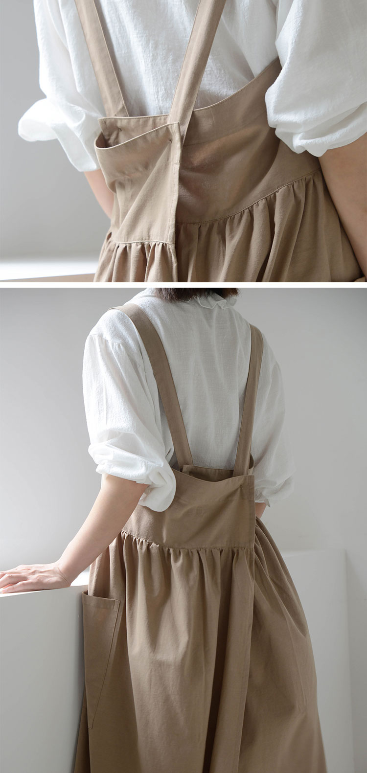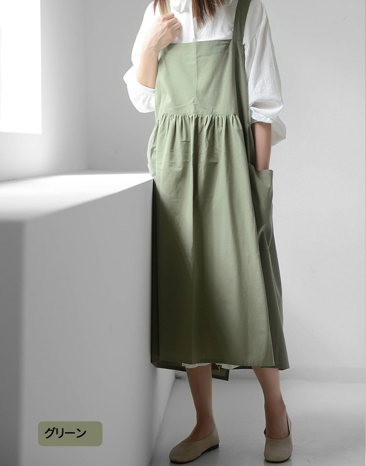 エプロンワンピース おしゃれ レディー キッチン用品 食器 調理器具 新登場! ライトブラウン ホワイト グリーン ブラック