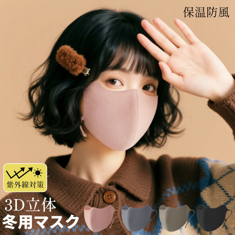 洗える 冬用 マスク レディース 防風 ブラック ピンク グレー カーキ