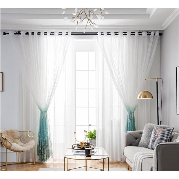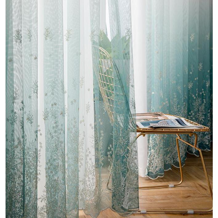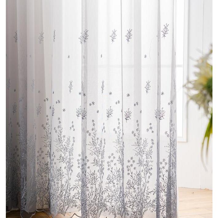 花柄 遮光 レースカーテン おしゃれ グリーン グレー