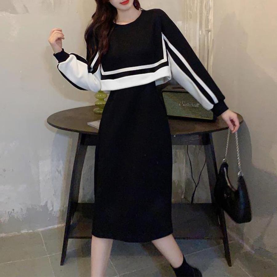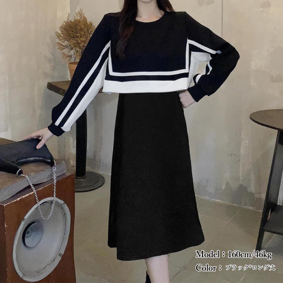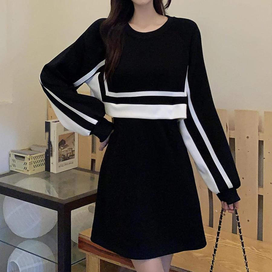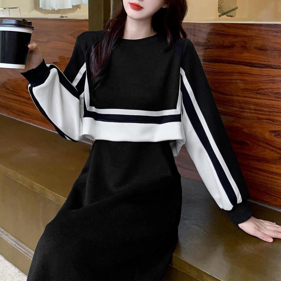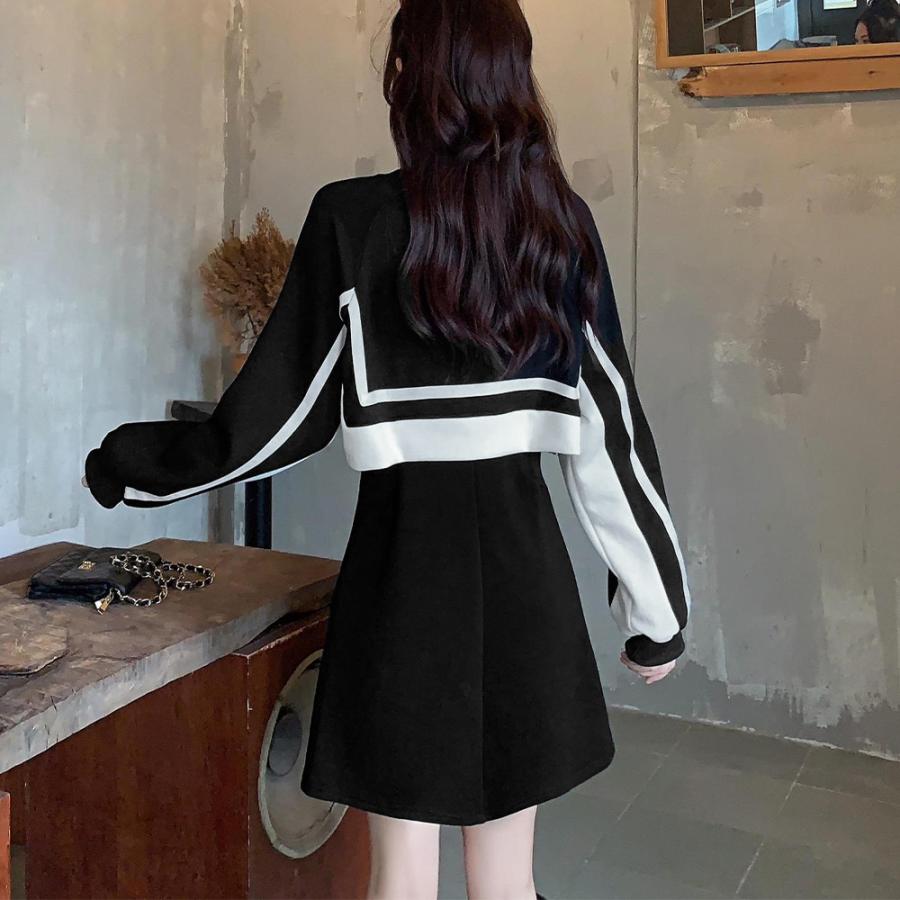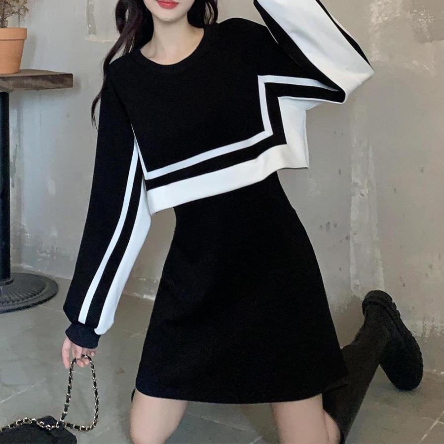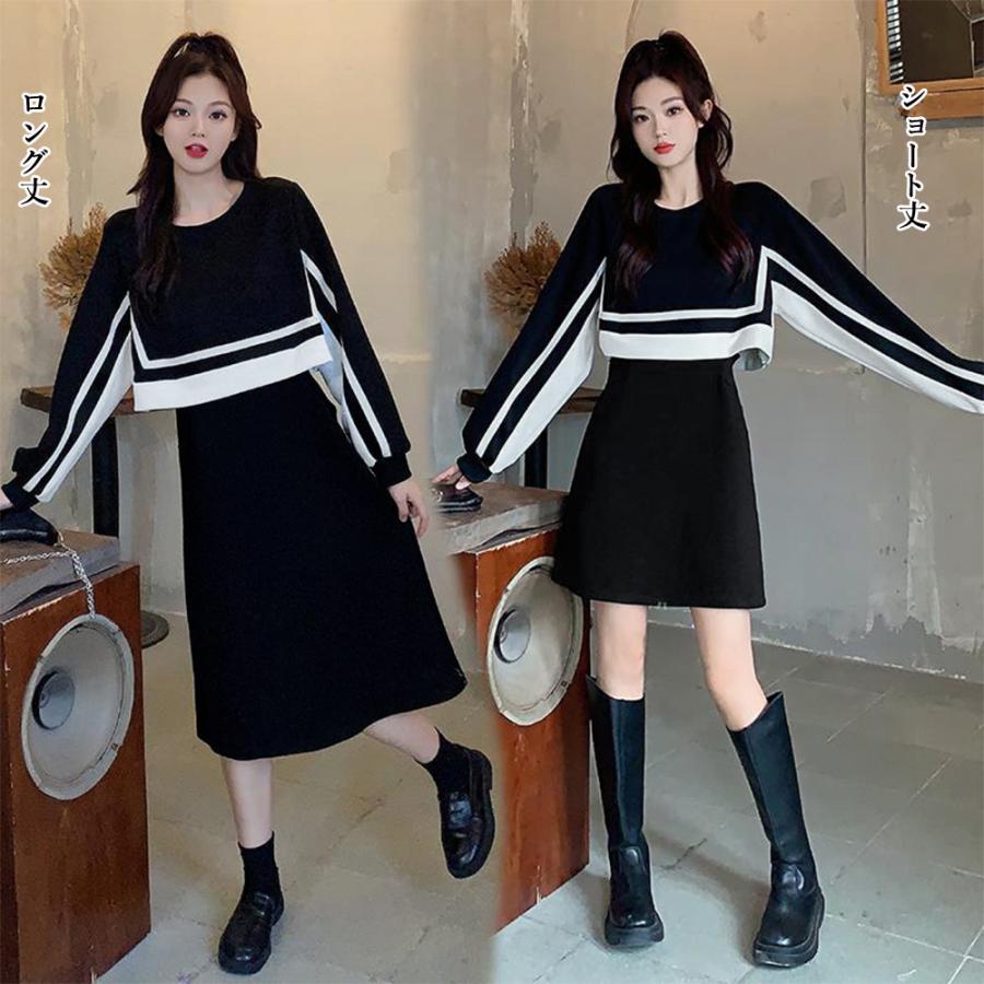 セットアップ風ワンピース 長袖 韓国秋 レディースファッション 新登場! ブラック*ロング丈 ブラック*ショート丈