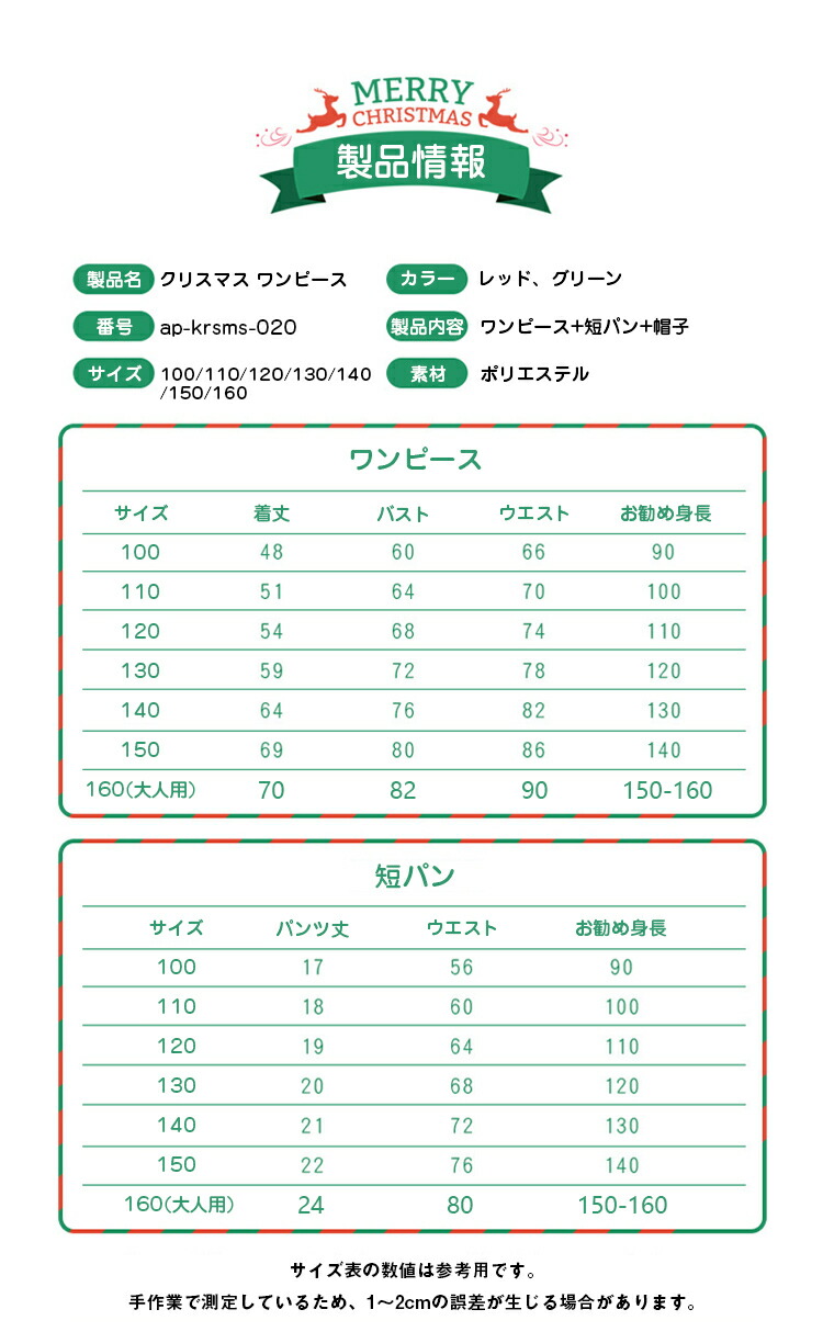 サンタ コスチューム 衣装 コスプレ コスプレ 変装 仮装 コスチューム一式 超目玉商品 レッド-3点セット グリーン-3点セット 100 110 120 130 140 150 160