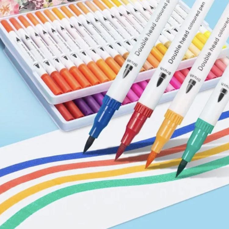水彩筆ペン カラーペン 60色 細字 太字 ツインマーカー アートマーカー 絵筆 水性 カラー筆ペン 水性マーカー 水彩毛筆 水彩ペンセット お絵かきセット 塗り絵 水彩画 絵手紙 色塗り