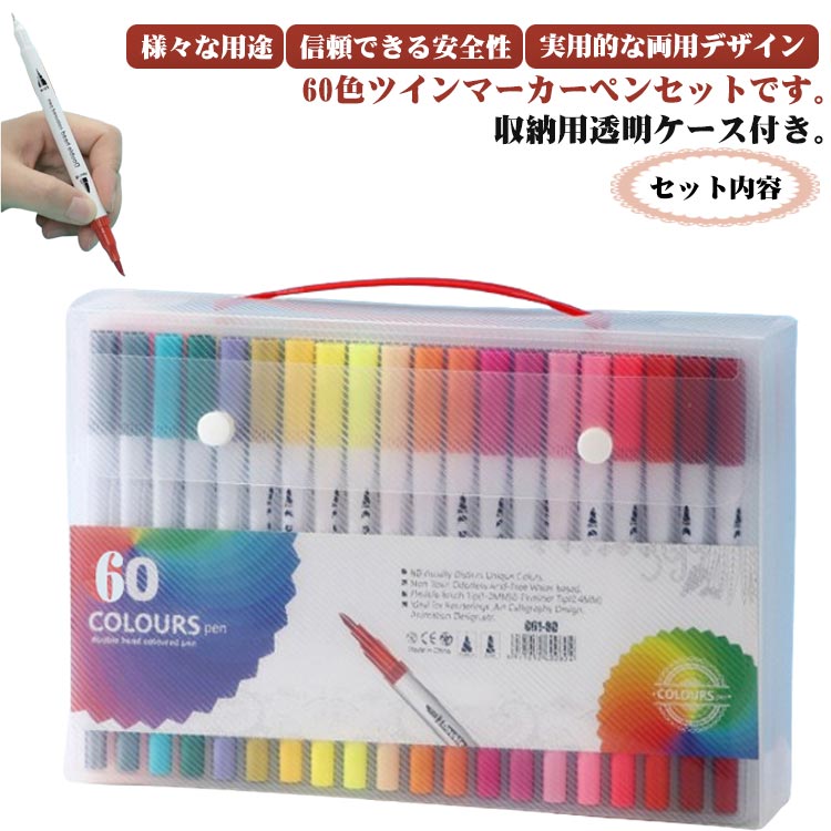 【セット内容】60色ツインマーカーペンセットです。収納用透明ケース付き。