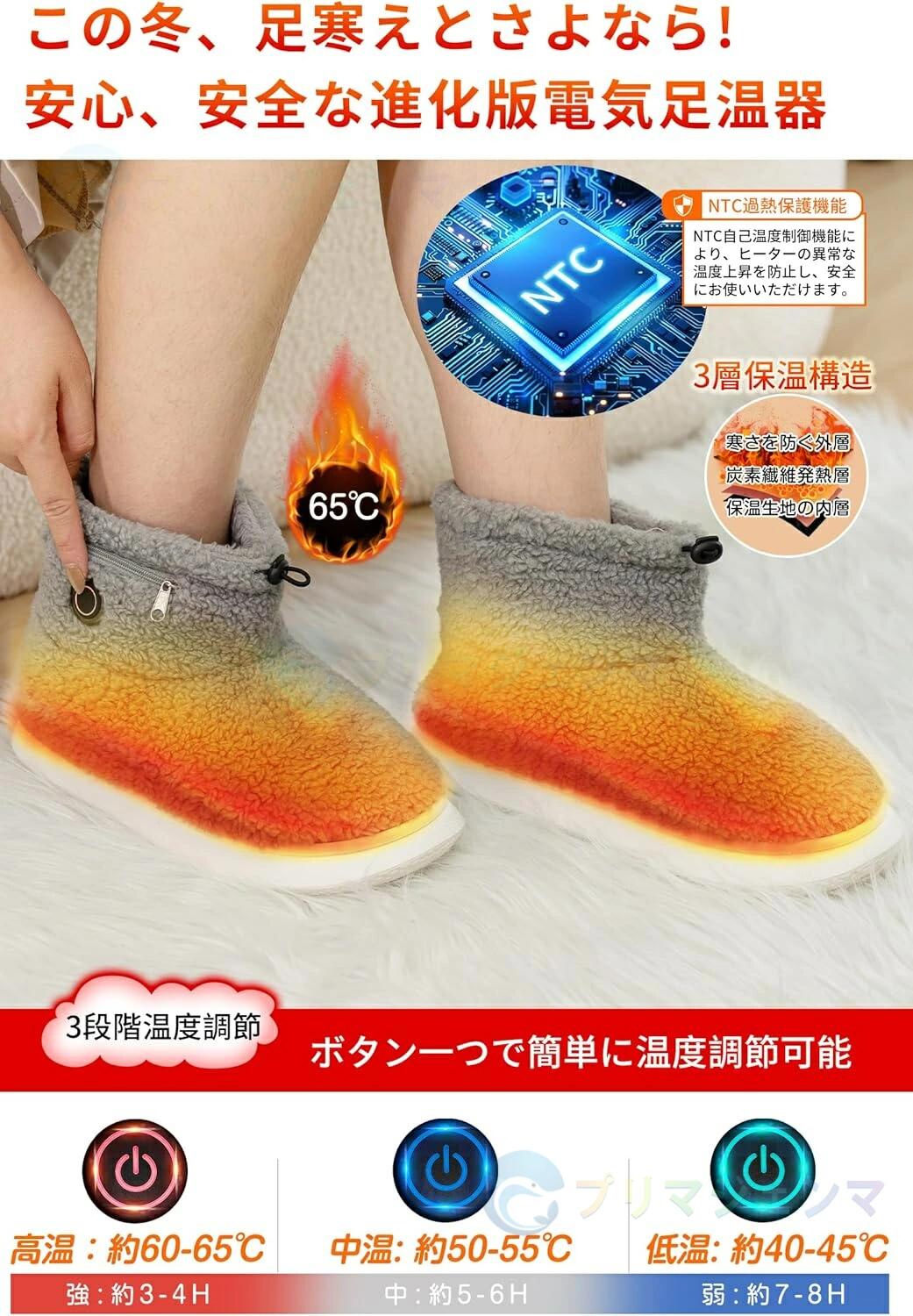 8秒急速加熱電熱スリッパ】2025冬最新デザインの足温器が登場!電気スリッパは熱伝導が高く、より安全な日本製ヒーターを採用しており、電源を入れるとわずか30秒で暖かくなり、足元の冷え対策としてとても便利な足温器です。電気足温器の電源キーにはNTC温度センサーが搭載されており、周囲の温度に応じて電流を調整し、精密な温度制御により、もっと良い加熱効果を実現しました。また、足首に合わせて調節できるドローコード付きで快適に履くことができます。