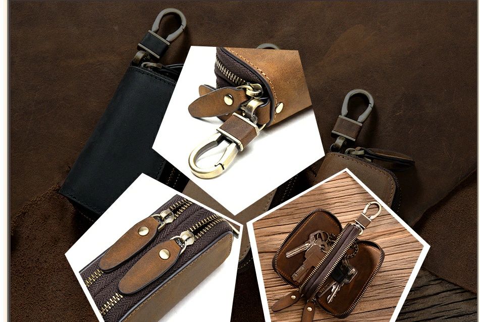 ダブルファスナー 車 メンズ キーケー brown coffee