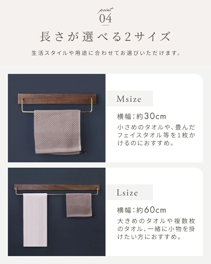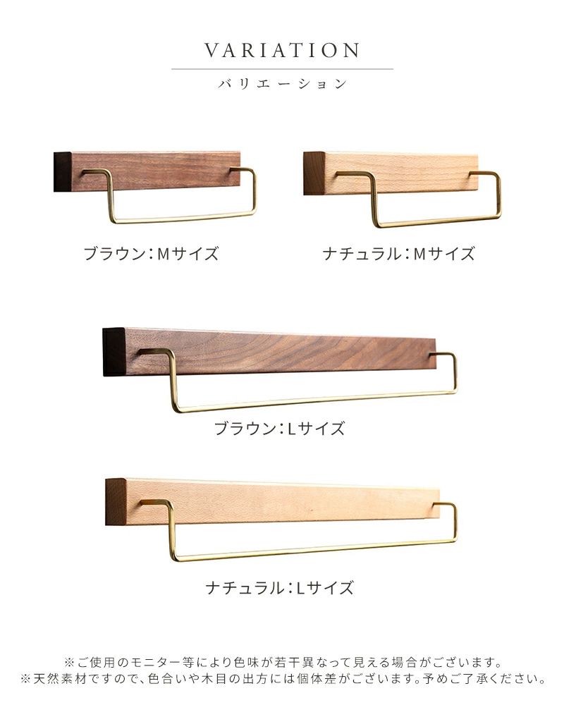 タオルハンガー タオル掛け タオルかけ 日用品雑貨 文房具 手芸 新登場! ブラウン ナチュラル M L