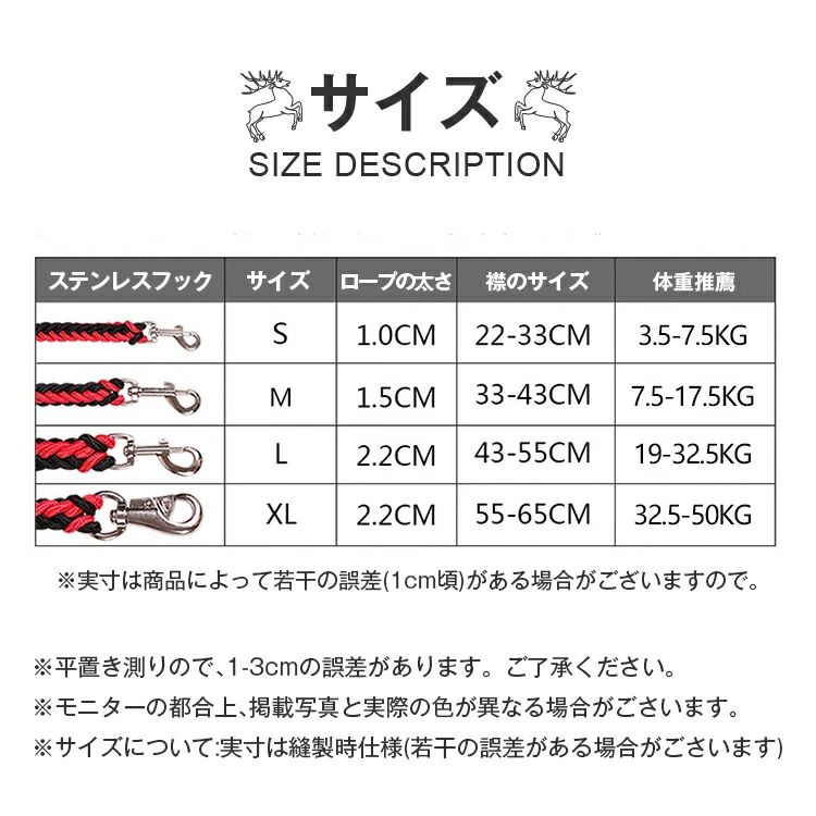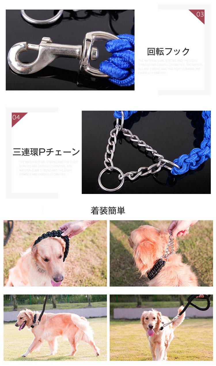 ロープ ペット リード 犬 大型犬 小 犬用品 首輪 胴輪 リード リード 続々入荷中 S M L XL レッド+ブラック レッド+ブルー ブラック+ブルー ブラック+パープル ブラック レッド ブルー