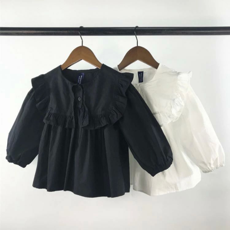 可愛 長袖ブラウス 春夏 ゆったり ビ キッズ トップス シャツ ブラウス 続々入荷中 ホワイト ブラック 80cm 90cm 100cm 110cm 120cm 130cm