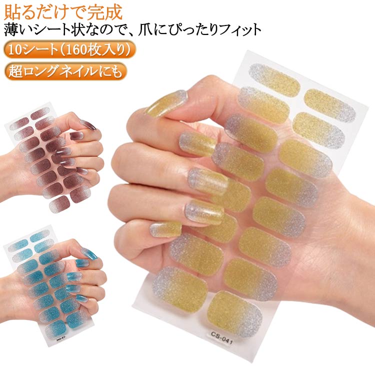ネイル フット ネイルシール 貼るだけ 硬化タイプ 10シート 160枚入 半硬化 貼って硬化 ジェルネイル シンプル 簡単 キラキラ おしゃ セルフネイル