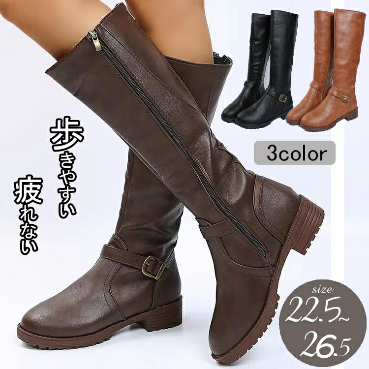 ロングブーツ レディース 疲れない ブーツ 歩きやすい 幅広 甲高 ローヒール ぺたんこ おしゃれ 細身 スマート スリム ジョッキーブーツ 大きいサイズ 大きい おすすめ ジョッキー