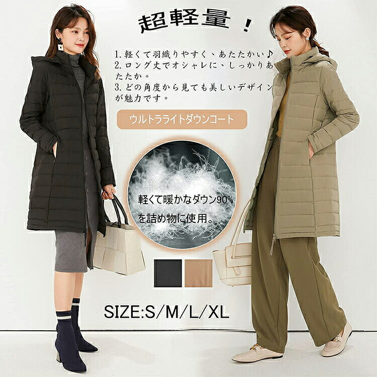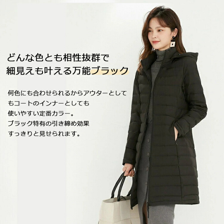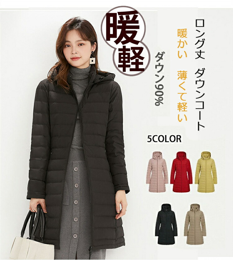 ダウンジャケット インナーダウン ロング あったか 大きいサイズ 秋冬 防寒 軽量 薄手 ノーカラー 雪 フード付き ジャケット ダウンコート レディース インナー お尻カバー 体型カバー アウター