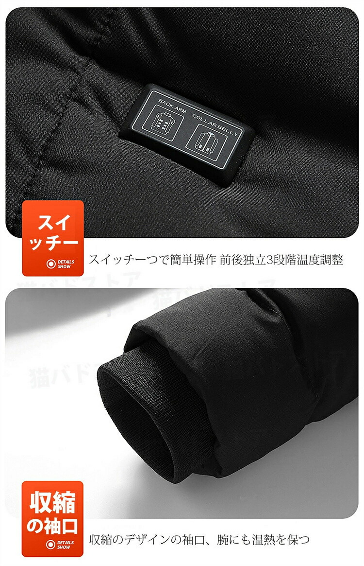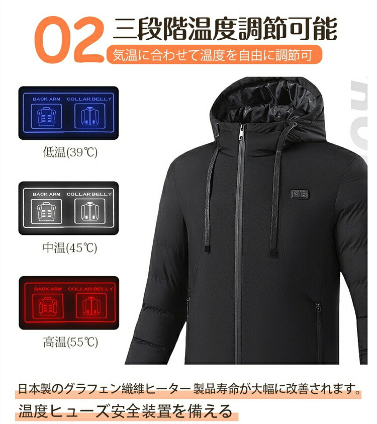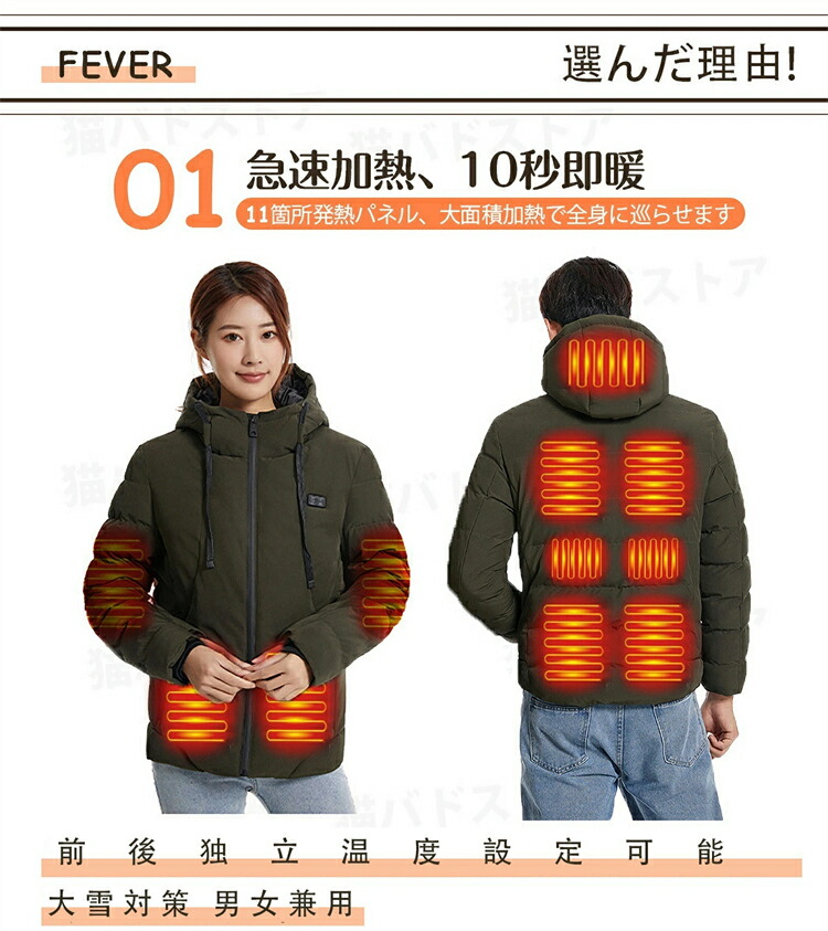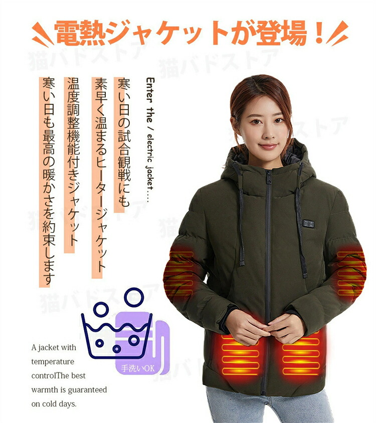 ジャケット 電熱 ヒーター付き メンズ レディース ヒーター11枚内蔵 フード付き ブルゾン ジャンパー ヒートジャケット 防寒着 電熱ウェア 男女兼用 水洗い 防寒ジャケット パーカー