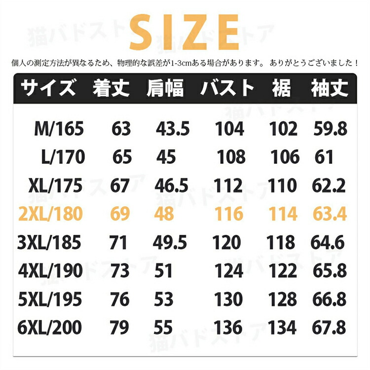 サイズ:M、L、XL、2XL 、3XL 、4XL、 5XL、 6XL (詳細はサイズ表をご覧ください)