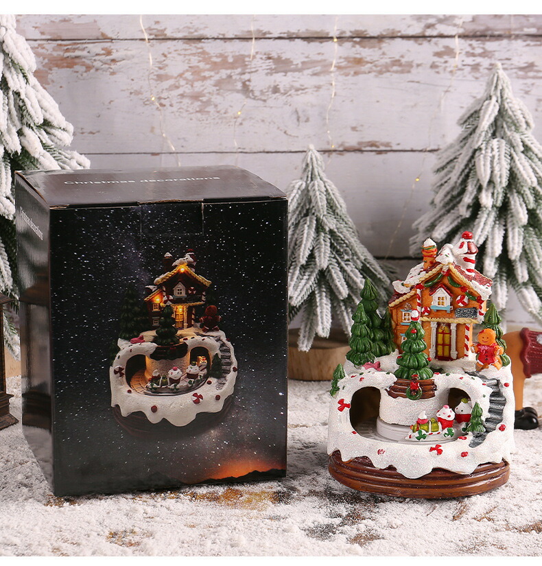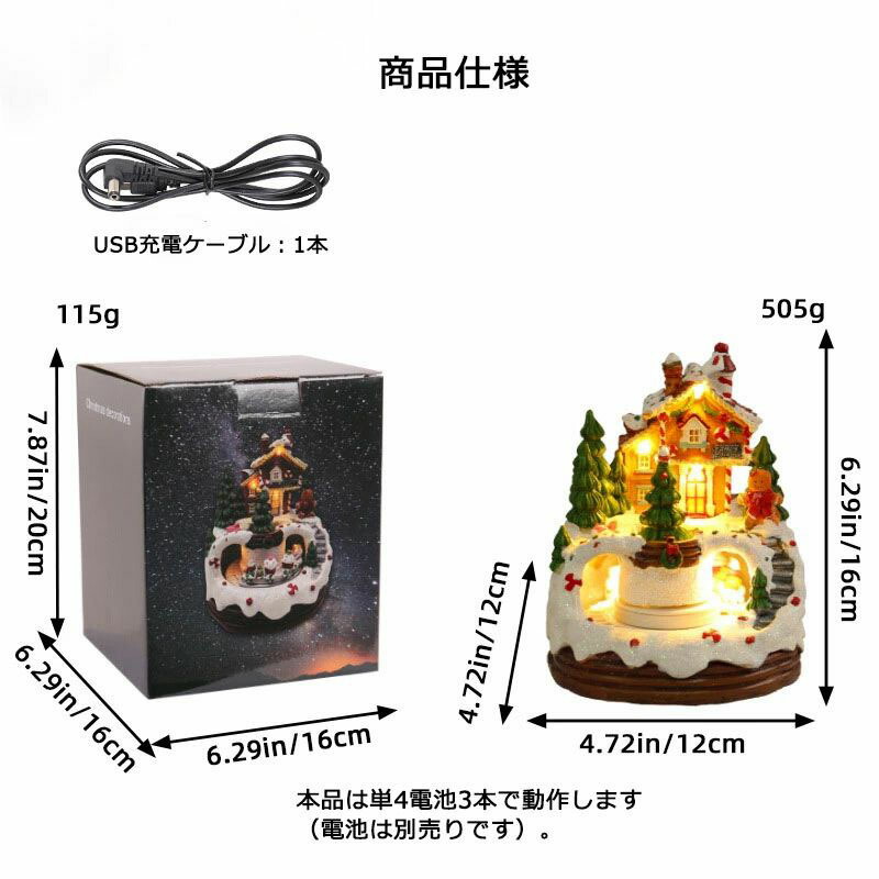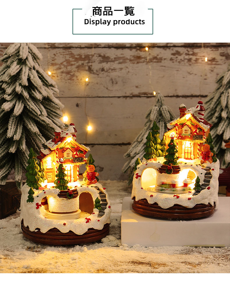 クリスマスハウス クリスマス飾り オルゴール 8曲入り クリスマス置物ハウス クリスマスデコレーション 発光 ミニハウス ライト飾 雰囲気満々 スピン電車付き USBケーブル付き 色褪せ 音楽効果付き