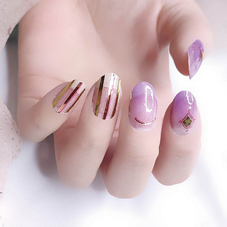 20シート入り(240枚セット)【ご使用前に】●爪に油分や水分、汚れが付着しているとシールが剥がれやすくなりますので、爪の表面をキレイに拭き取ってください。●甘皮を処理し、付属のファイルなどで爪の形や表面を整えるとよりキレイに仕上がります。●シートからネイルシールを剥がす際にはシートの外側部分を持って剥がしてください。(1)製品を爪に合わせ、爪よりも少し小さめのネイルシールをお選びください。(2)キューティクルラインと1mmほどの余裕があるところにネイルシールを貼ってください。(3)ネイルシールを貼って余りのシールは爪の形に合わせて折ってください。ファイルを利用して、爪の下の方向に向けて余りのネイルシールを削ってください。(4)お好みの硬化方法を選んでください。・寝る前に貼り硬化する場合・自然光で硬化する場合:約2時間(自然光が多い室内と室外にて)・UV&LEDライトで硬化する場合:約30秒【剥がし方】●ウッドスティックでキューティクルラインからゆっくり押出しながら剥がしてください。