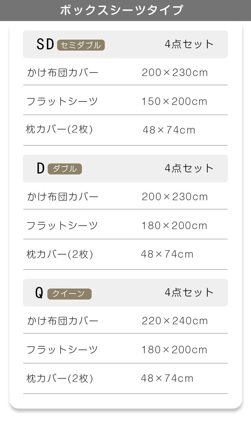 SD/D セミダブル/ダブル(4点セット)