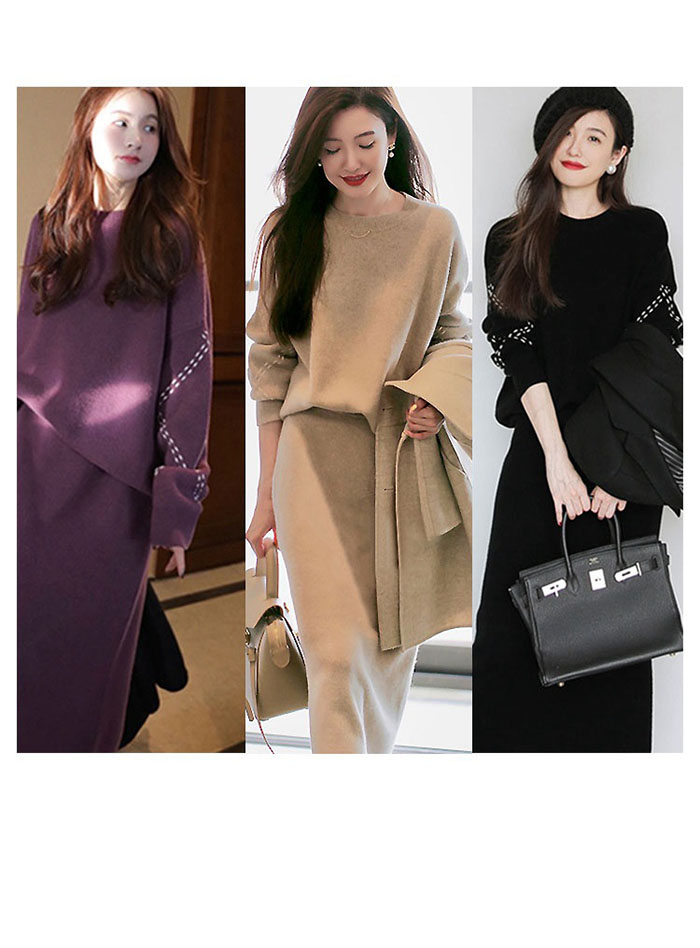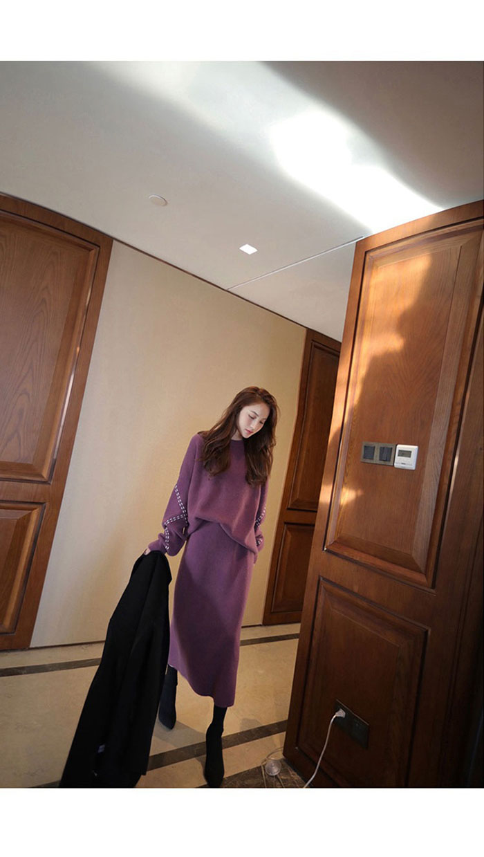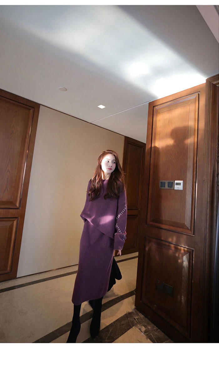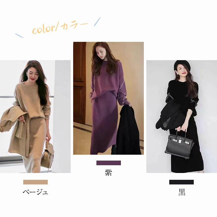 ニットセットアップ 韓国 スカート セ レディースファッション 豊富 ベージュ 紫 黒