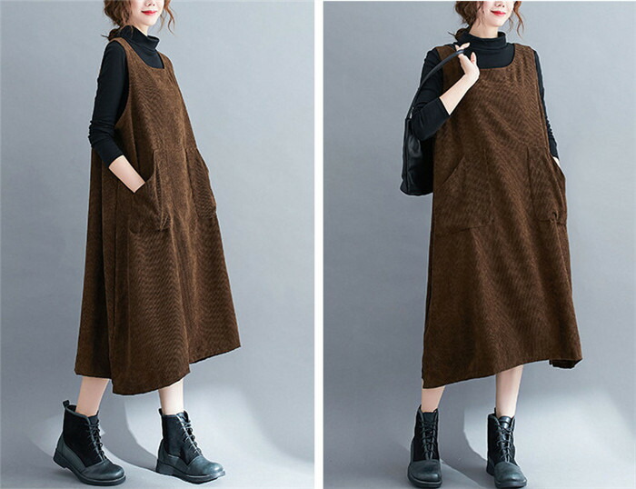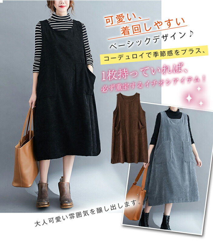 ジャンパースカートサロペット コーデュ レディースファッション 続々入荷中 黒 ブラウン グレー M L XL XXL