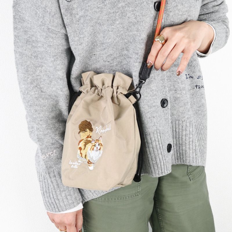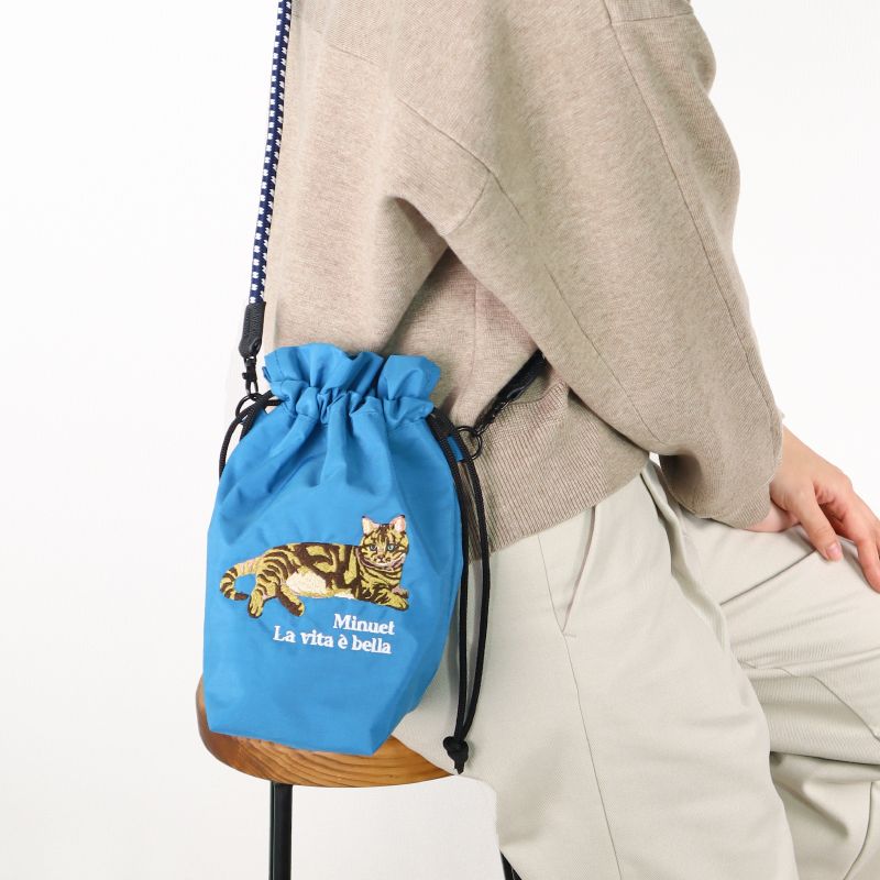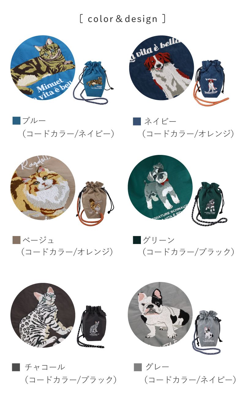 \SNSで話題/ 巾着袋 ドローストリングバッグ 猫ナイロン 巾着ショルダー ワンマイル 軽量 バッグ アニマルショルダーバッグ 犬 猫 アニマル刺繍 旅行 サブバッグ レディース アニマル 巾着 シ