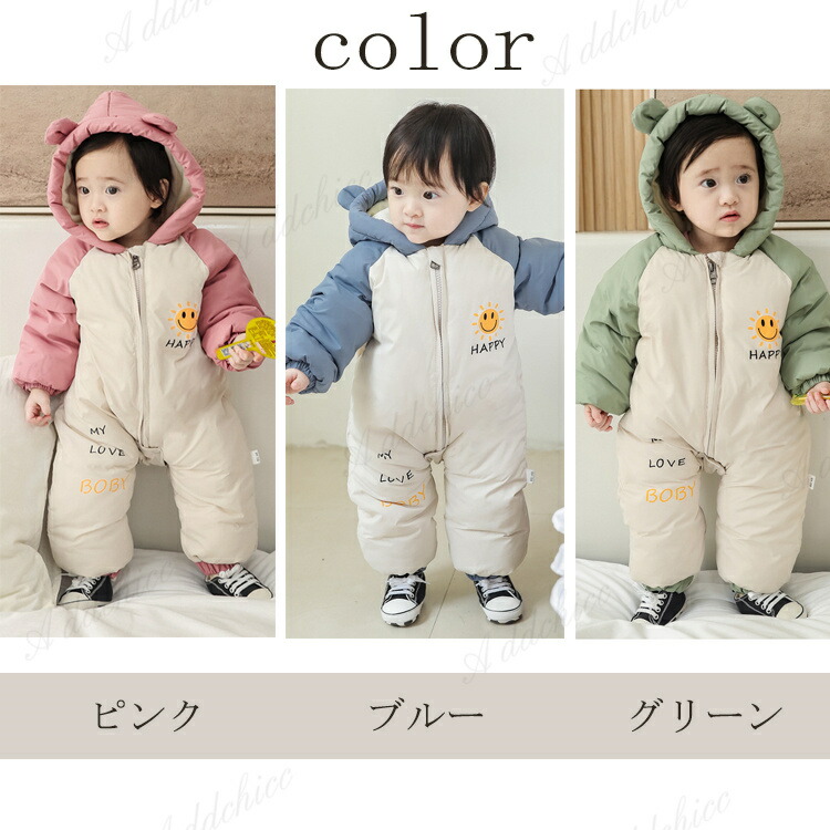 ジャンプスーツ ベビー カバーオール キッズ ベビー マタニティ 人気 80 90 100 ピンク ブルー グリーン