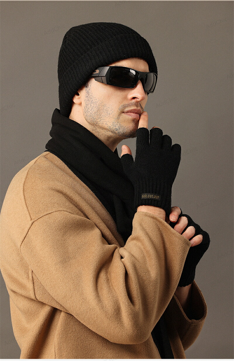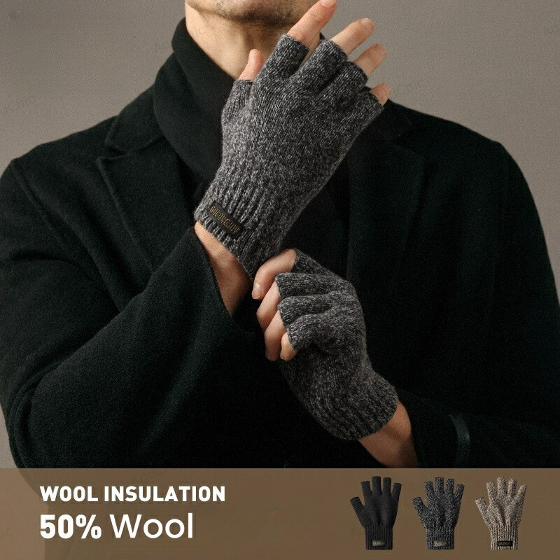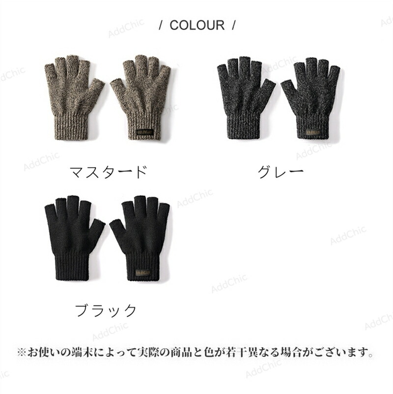 指切り手袋 ウールメンズ手袋 手袋 指 バッグ 小物 ブランド雑貨 豊富 マスタード グレー ブラック L XL