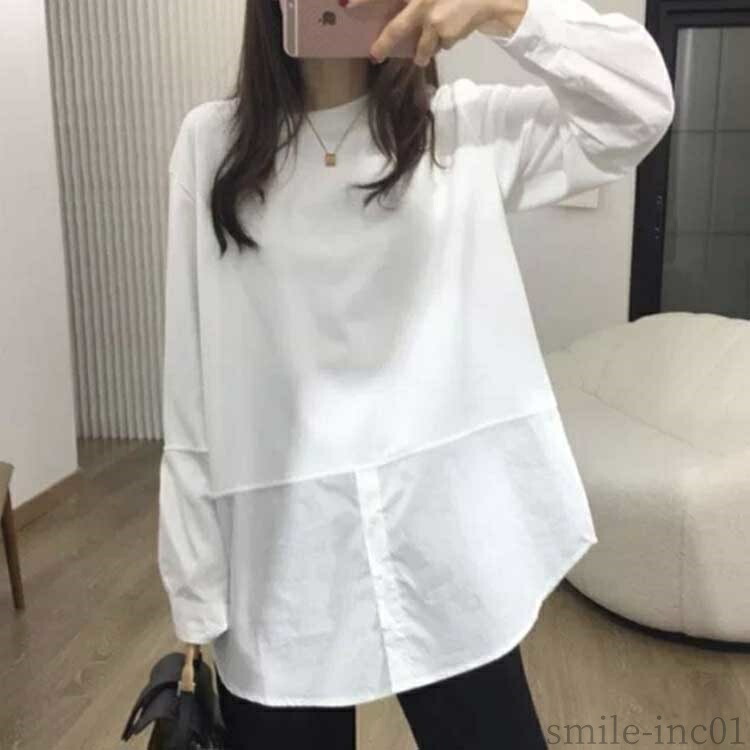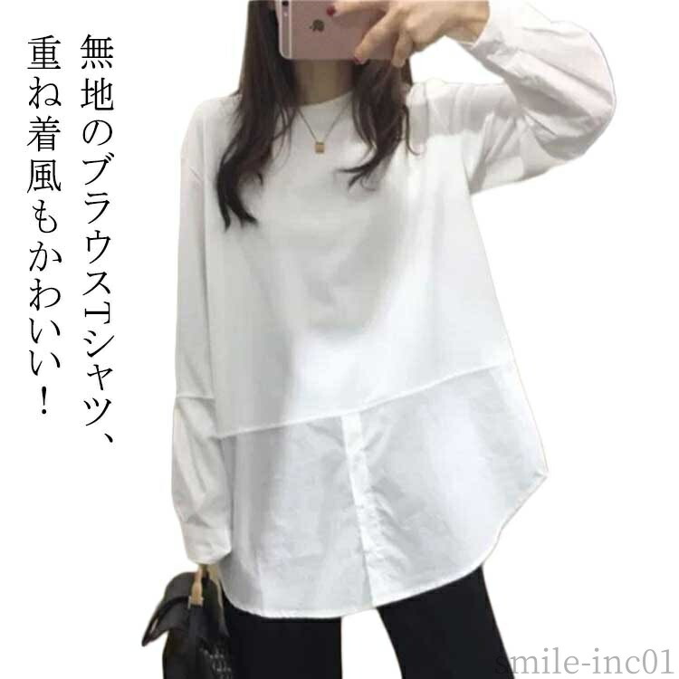 ロンT レイヤード シンプル 無地 大 トップス シャツ ブラウス 続々登場 S M L
