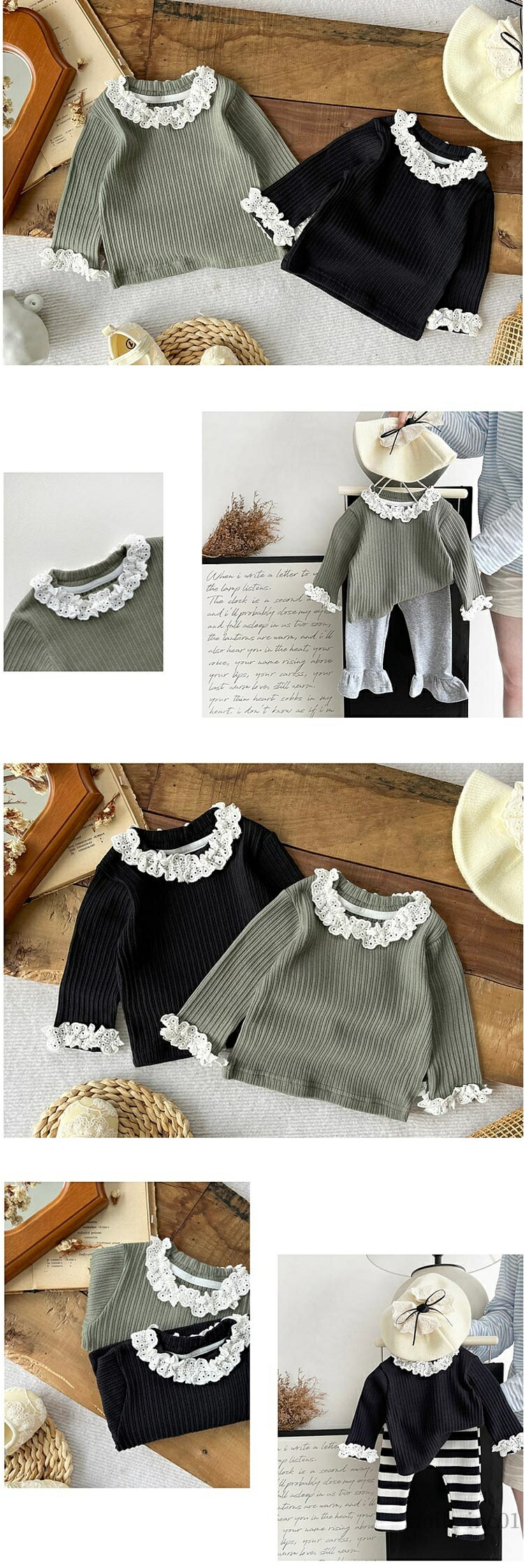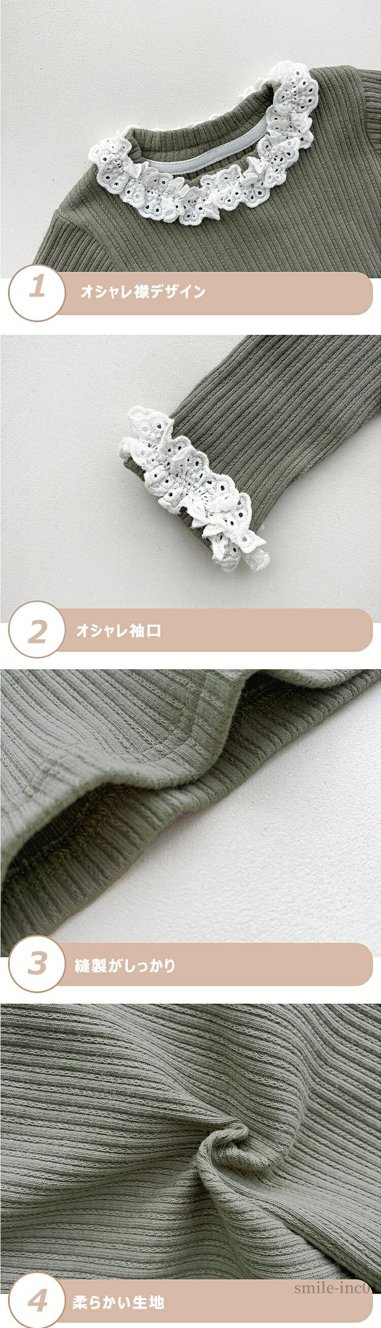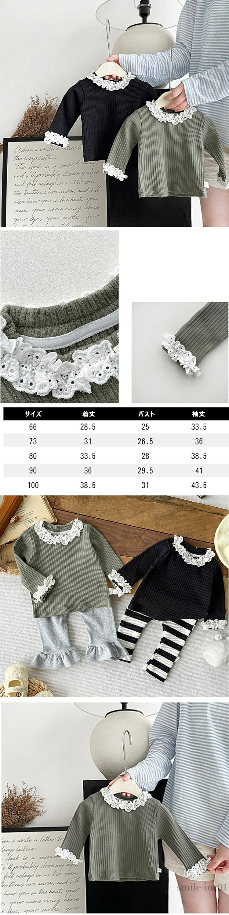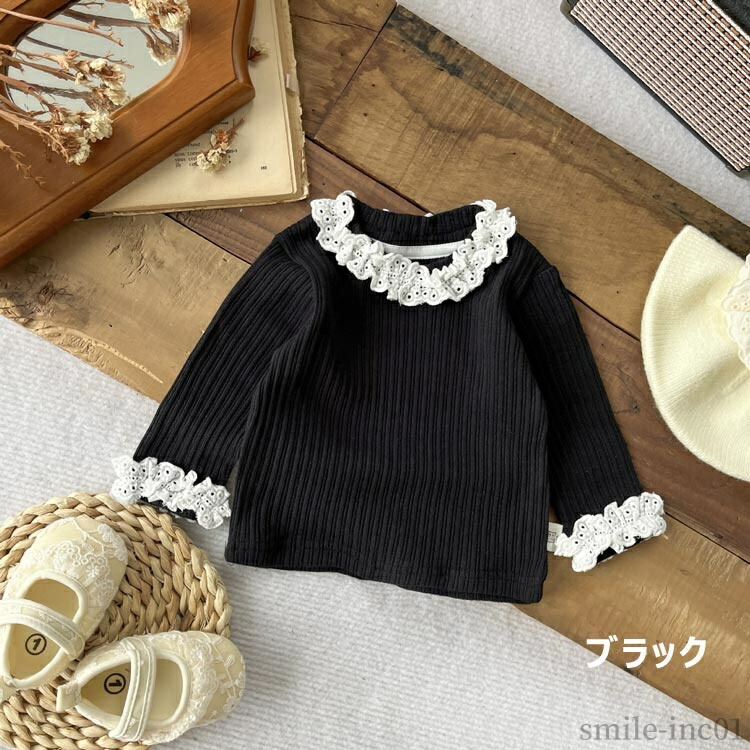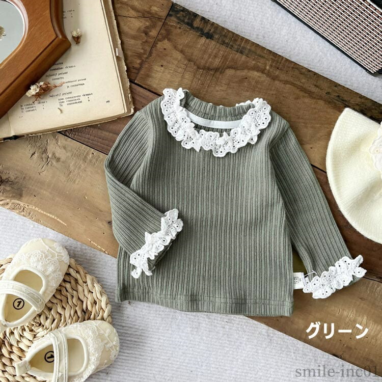 お揃い リブ フリル襟 ベビー服 カッ キッズ トップス Tシャツ カットソー 新登場! グリーン ブラック 66 73 80 90 100