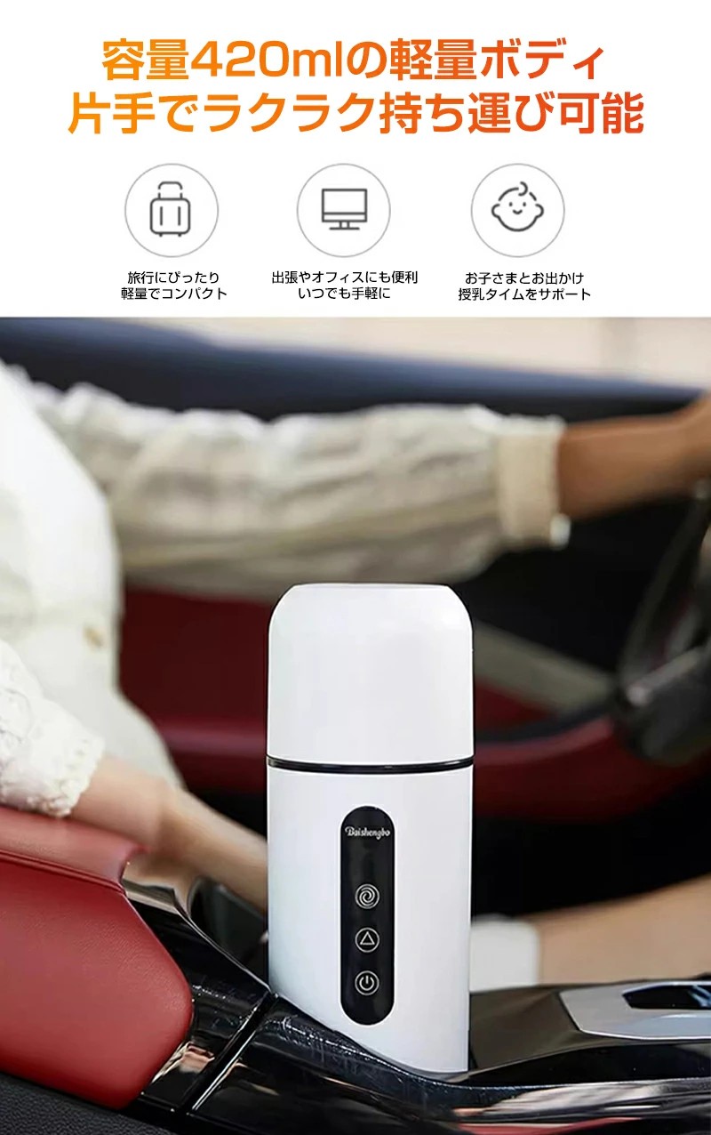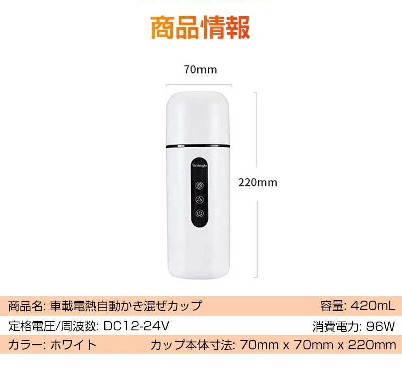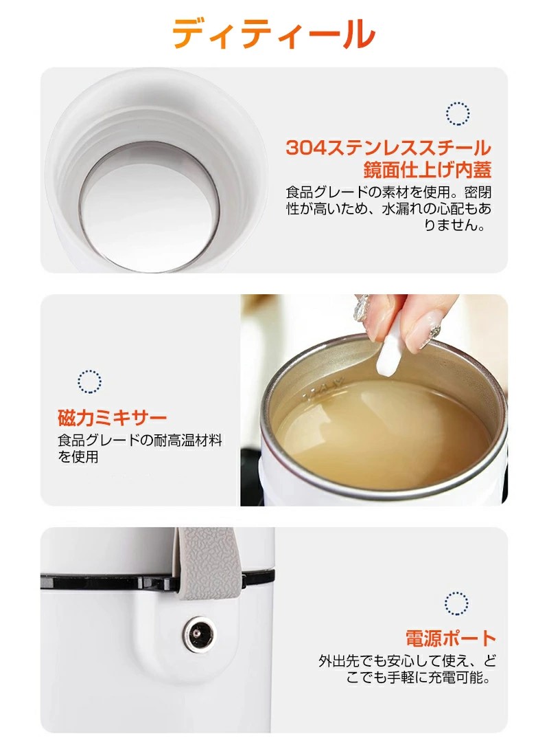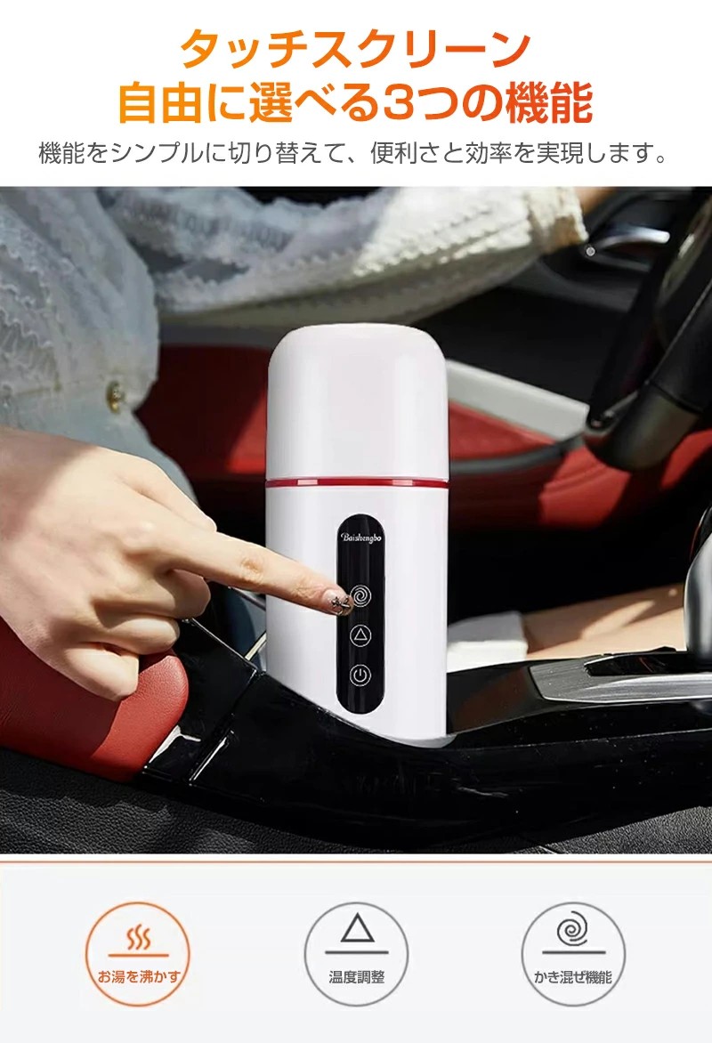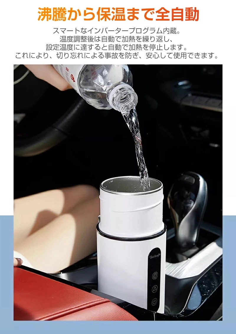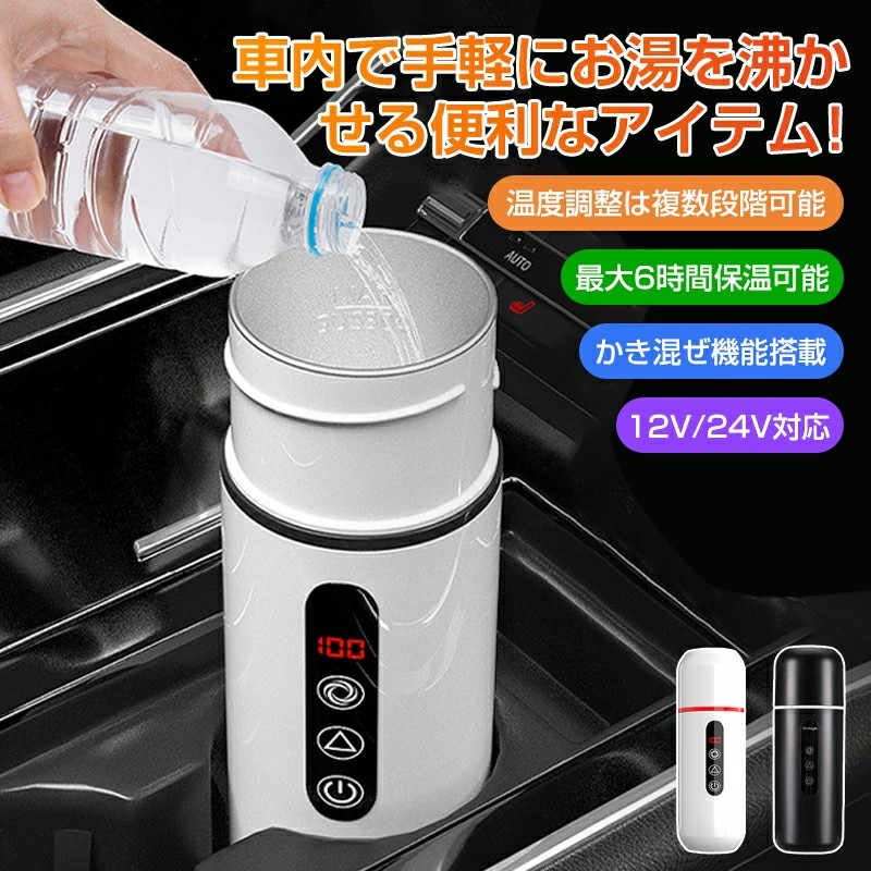 車載電熱ポット 車用 電気ケトル DC ホワイト ブラック