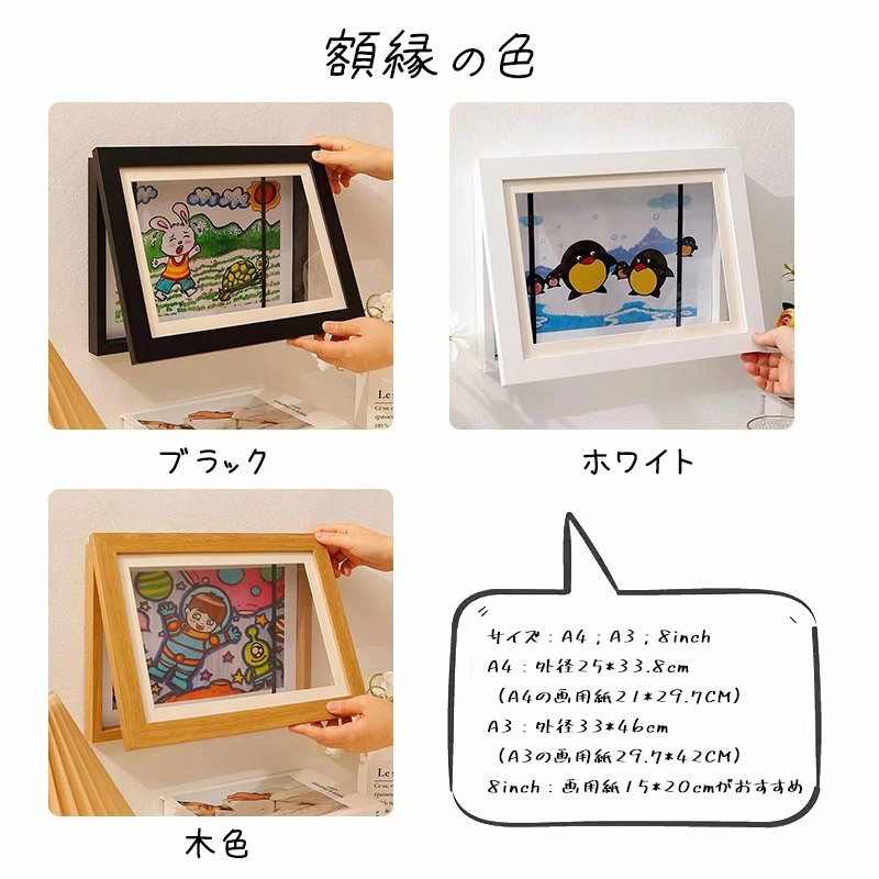 アートフレーム 子ども 絵 飾る 子供 ブラック ホワイト ナチュラル A4サイズ A3サイズ
