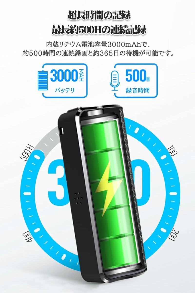 3000mAhの大容量バッテリーを内蔵し、驚異の80時間連続録音を実現しています。一度の充電で長時間の会議や連続したハードスケジュールにも対応。バッテリー切れの心配を減らし、安心して録音活動に集中できるため、重要な会話を取り逃がすことなくしっかり記録できます。