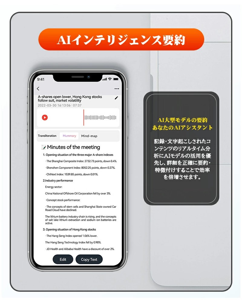スマホ、パソコン、クラウドストレージへの簡単な保存とアクセスが可能で、重要な音声情報を時間や場所を問わずに管理できます。これにより、ビジネス、教育、個人の学習効率を飛躍的にアップさせることが可能です。いつでもどこでも情報を引き出す自由を手に入れ、大切な瞬間を逃しません。