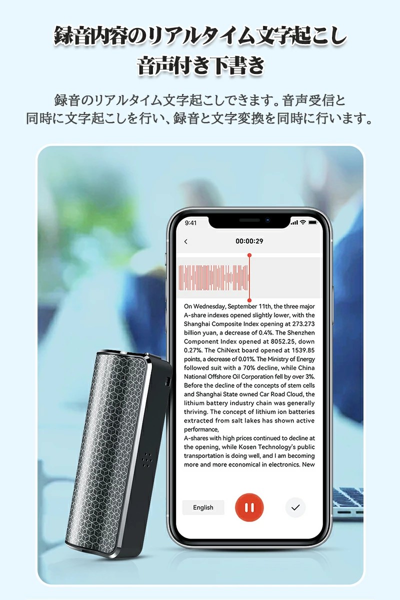 ボイスレコーダー 文字起こし AIボイスレコーダー 自動文字起こし 小型 高性能 翻訳機 高音質 要約 同時通訳 会話翻訳 音訳 ICレコーダー 80時間連続録音 スマホ連携 遠隔録音 録音機