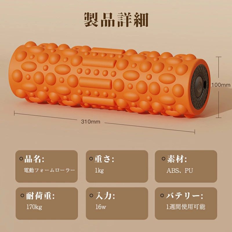 フォームローラー 電動 筋膜リリース ブルー オレンジ ブラック