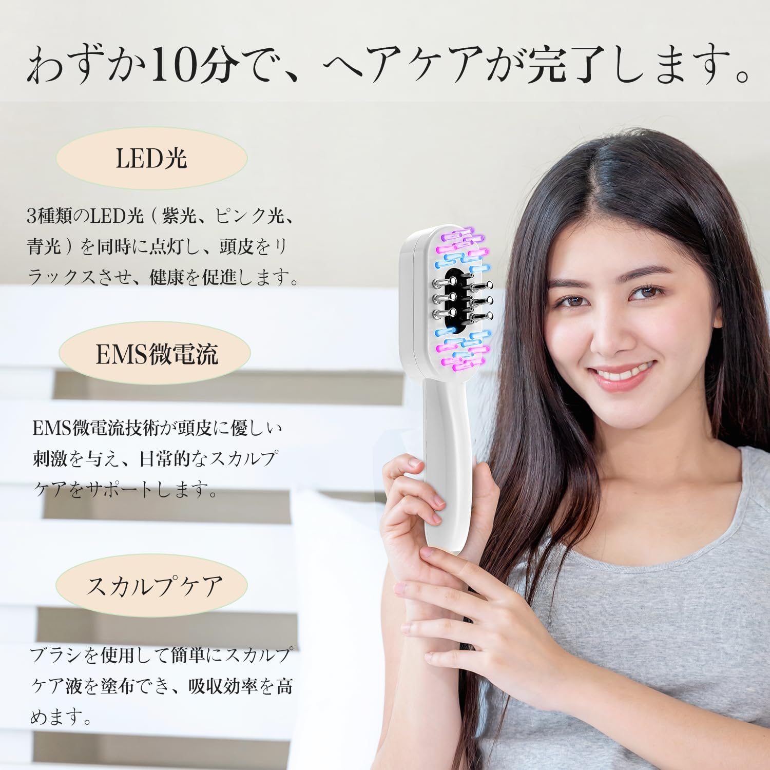 【3色LEDライトで快適な頭皮ケア】
