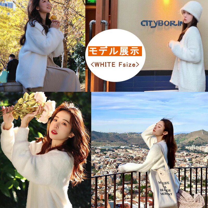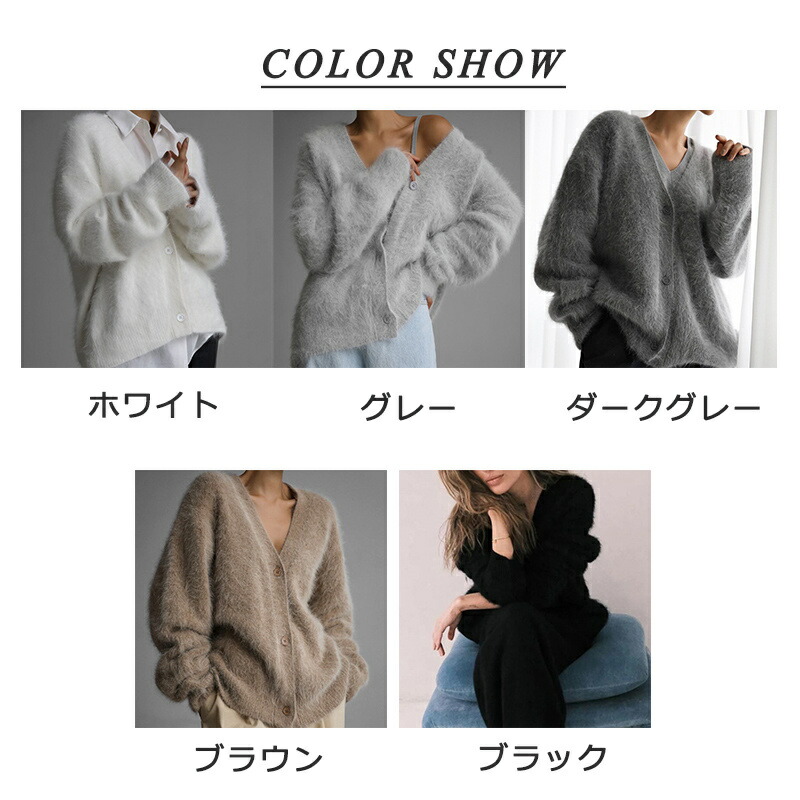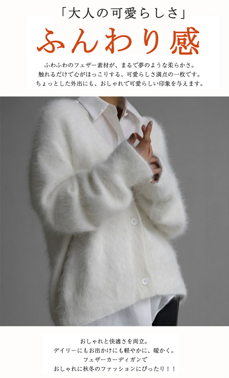 フェザーヤーン カーディガン 長毛 シ レディースファッション 新作 ホワイト グレー ダークグレー ブラウン ブラック