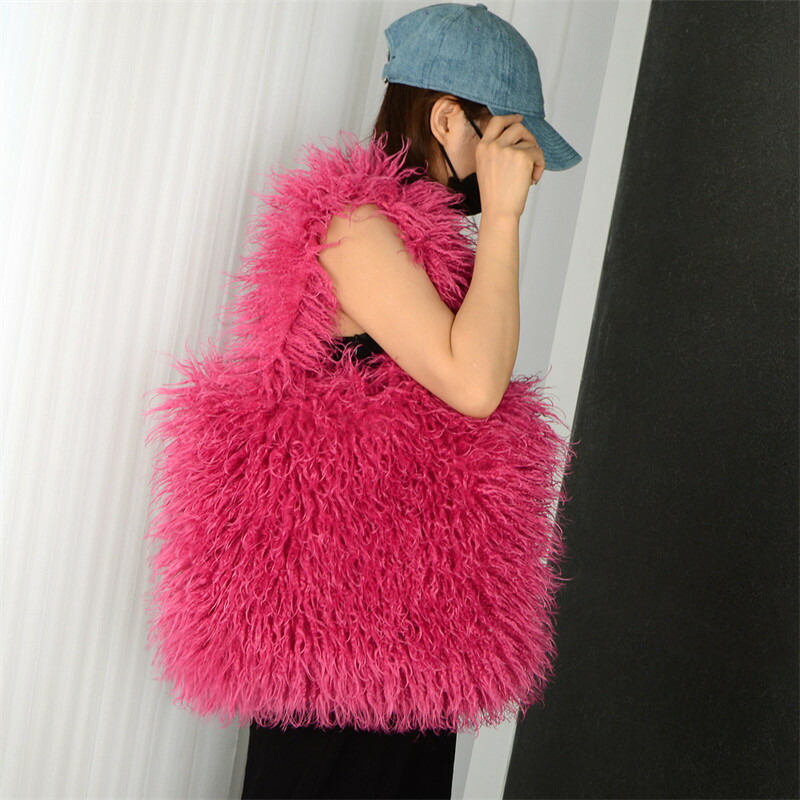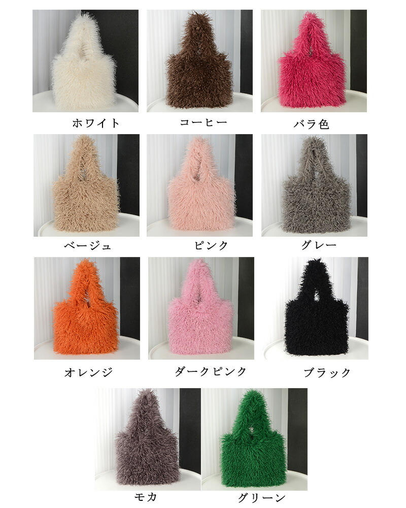 トートバッグ ファーバッグ エコファー バッグ 小物 ブランド雑貨 続々登場 ホワイト コーヒー バラ色 ベージュ ピンク グレー オレンジ ダークピンク ブラック モカ グリーン