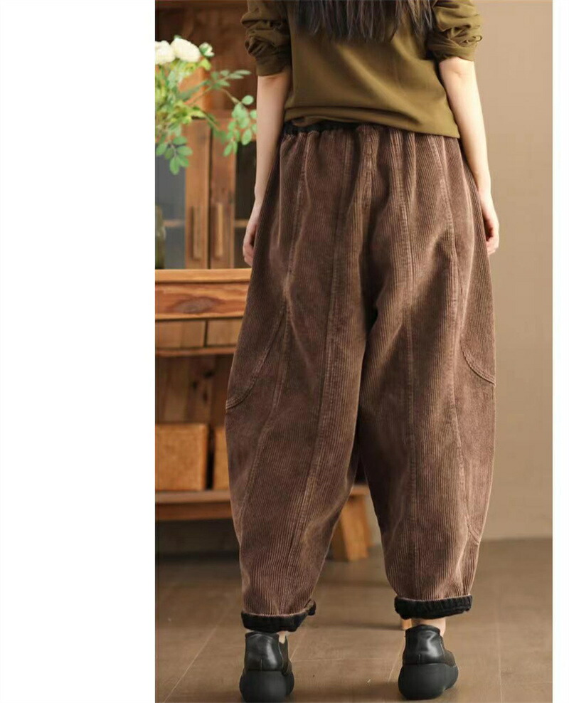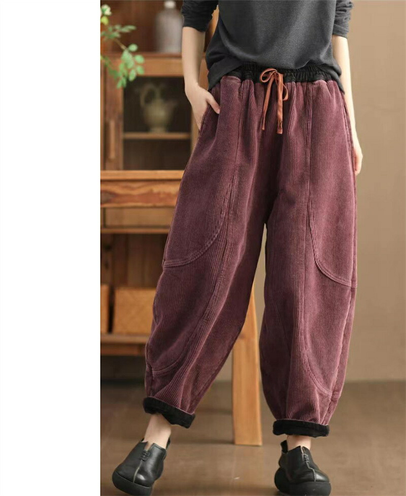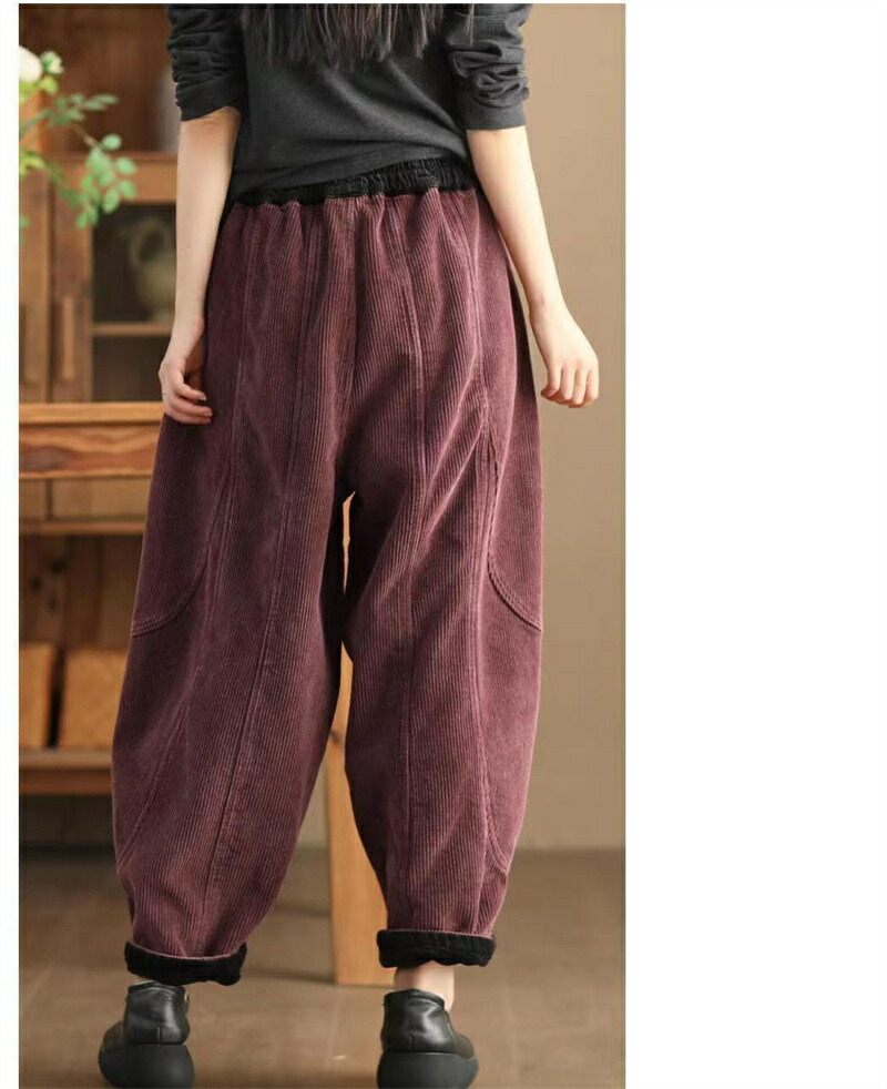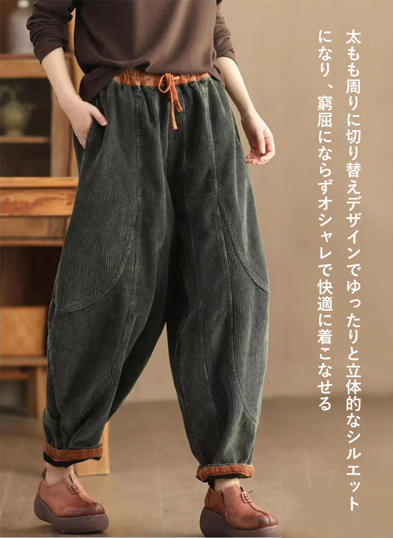裏起毛 バルーンパンツ 秋冬 コーデュ レディースファッション 超目玉商品 ブラック グリーン ブラウン パープル M L XL 2XL