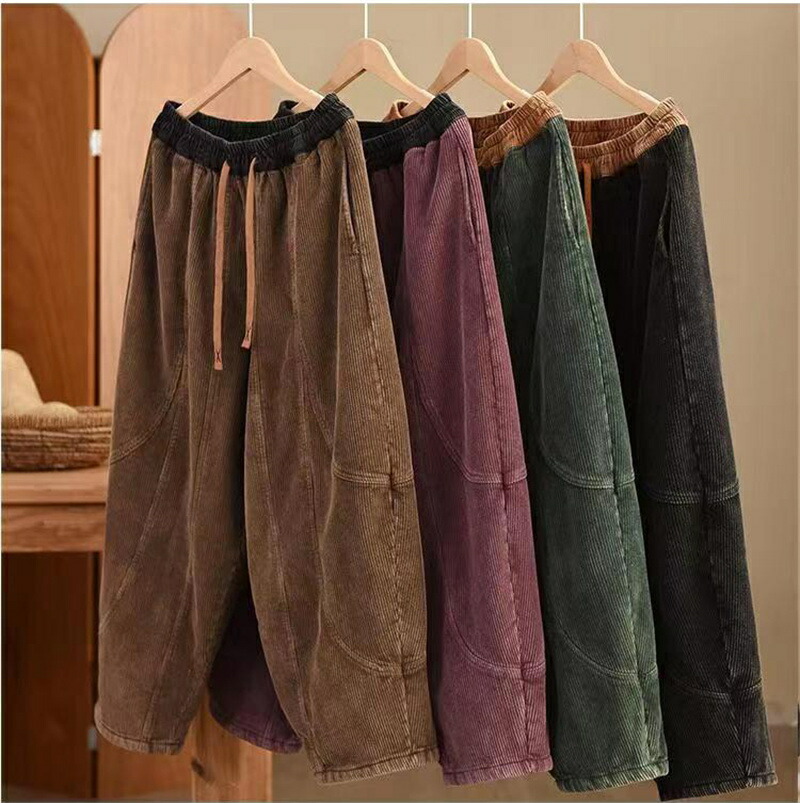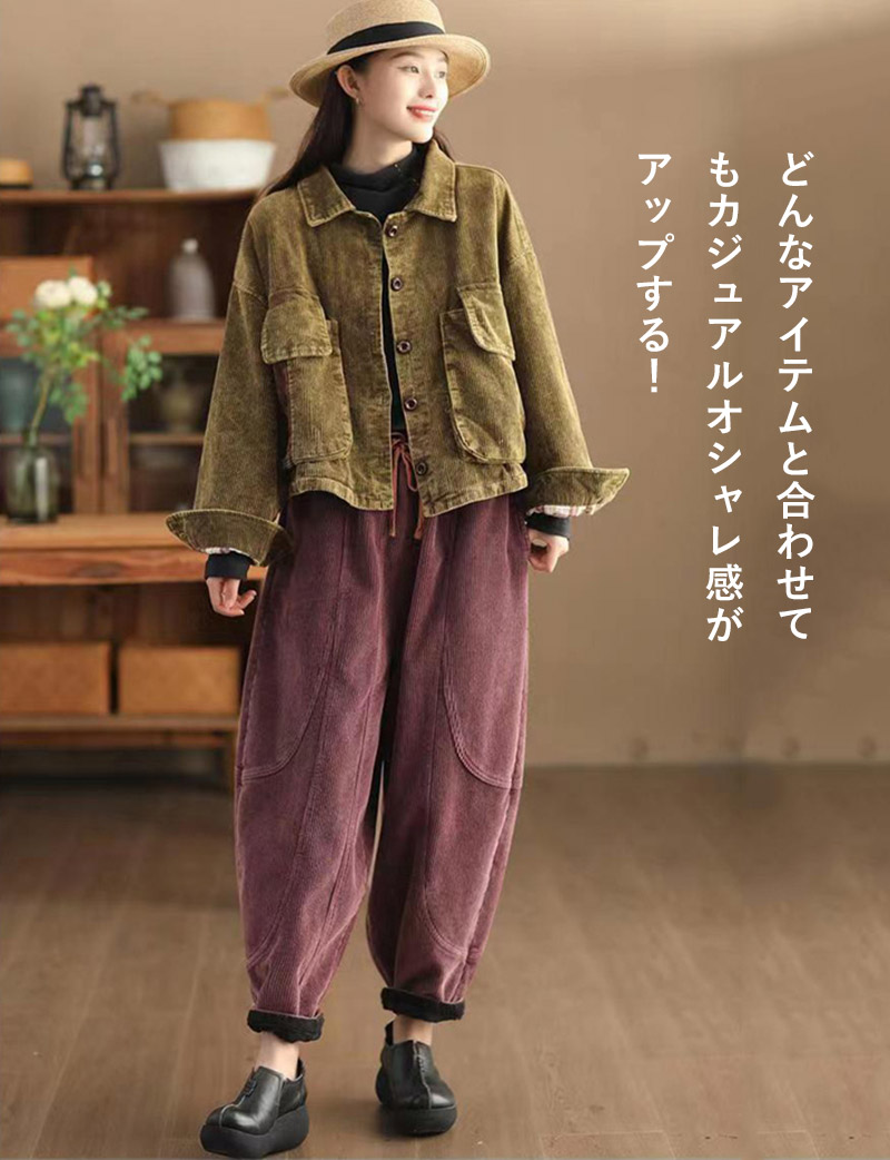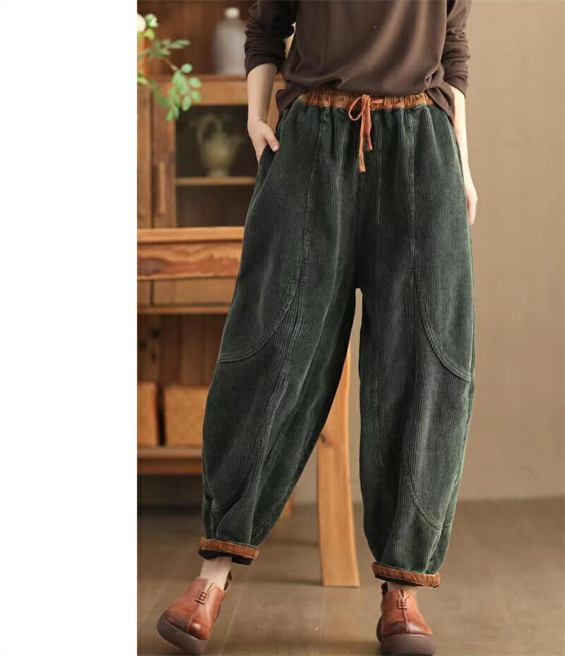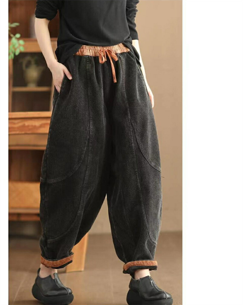 裏起毛 バルーンパンツ 秋冬 コーデュ レディースファッション 超目玉商品 ブラック グリーン ブラウン パープル M L XL 2XL