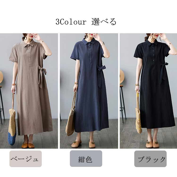 tシャツワンピ 半袖 夏 シャツワンピ ワンピース 新登場! ベージュ 紺色 ブラック M L XL 2XL