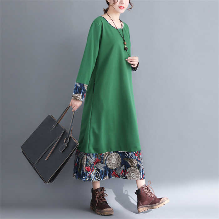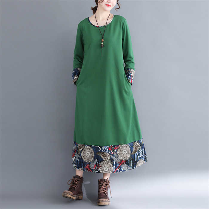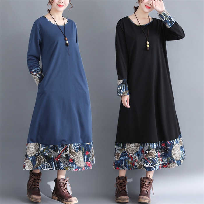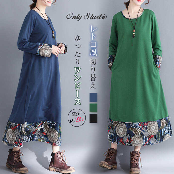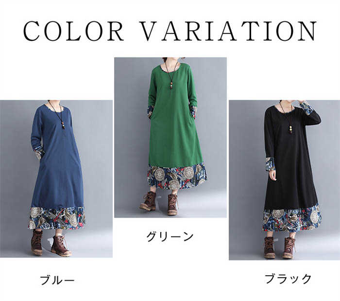 秋 お洒落 花柄 レディース 綿麻ワン レディースファッション 新登場! ブルー グリーン ブラック M L XL 2XL