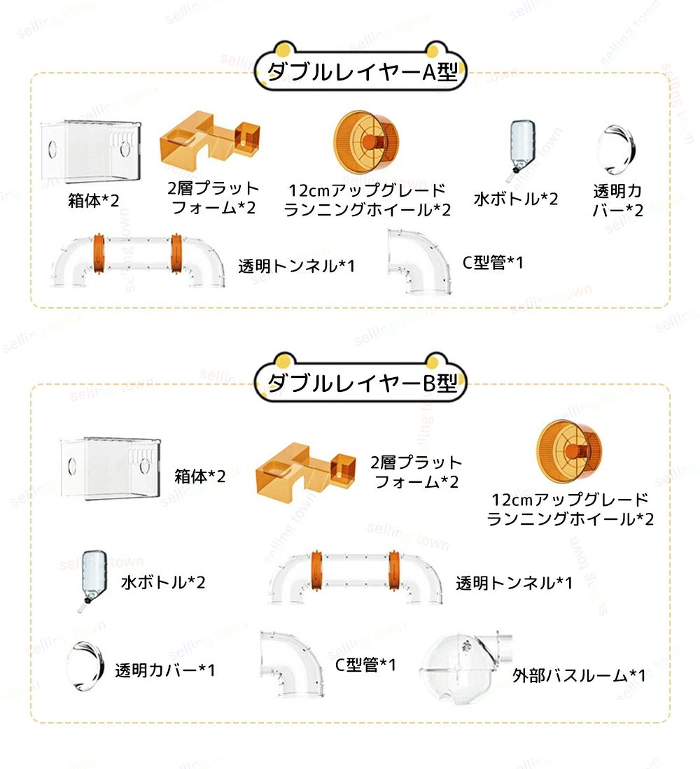 ハムスター ケージ 透明 DIY可能 オレンジ グリーン ブルー シングルA型 シングルB型 ダブルレイヤーA型 ダブルレイヤーB型