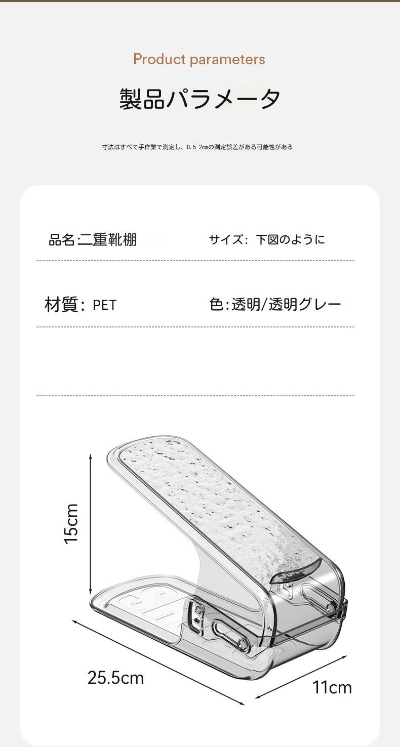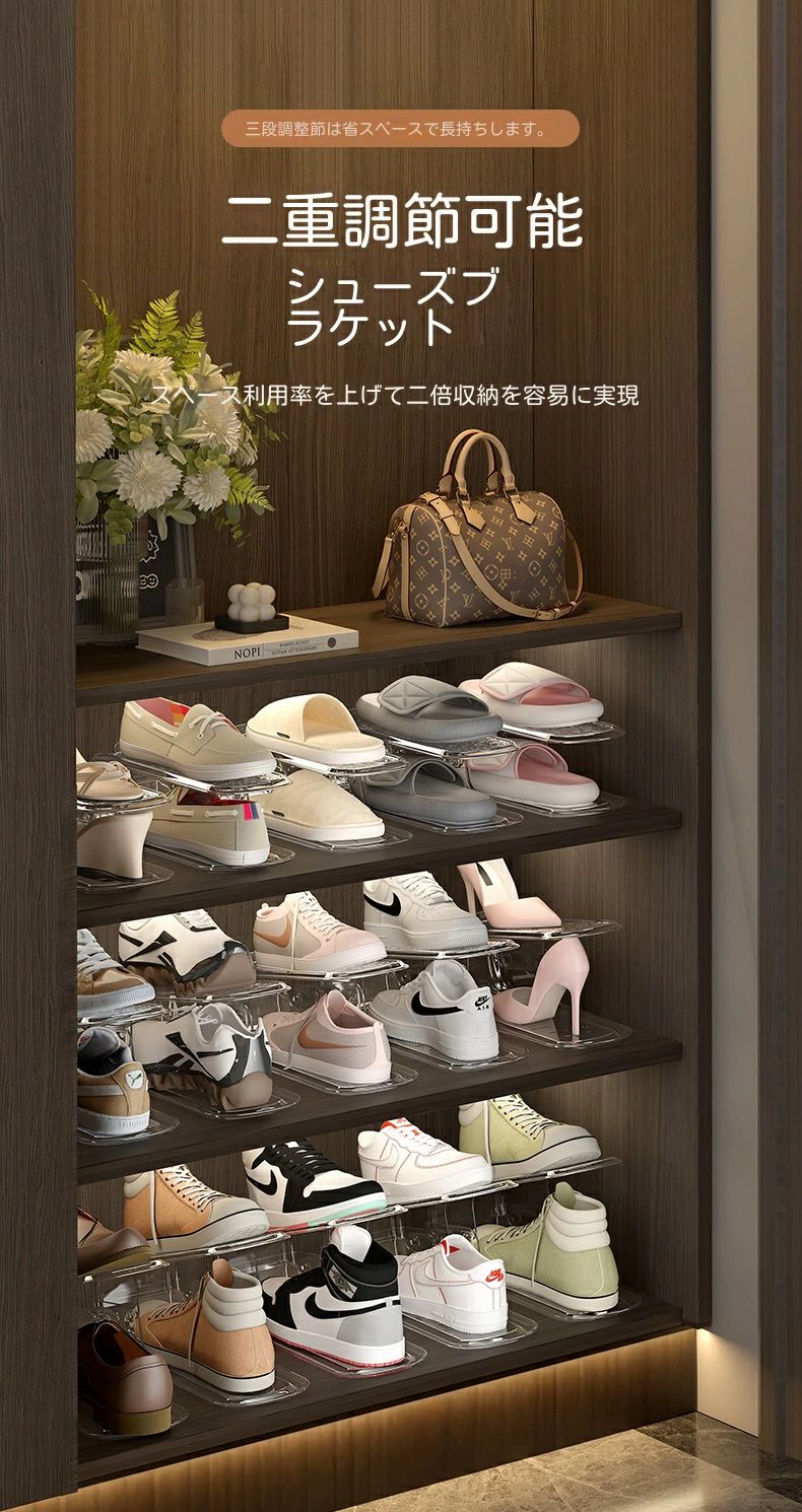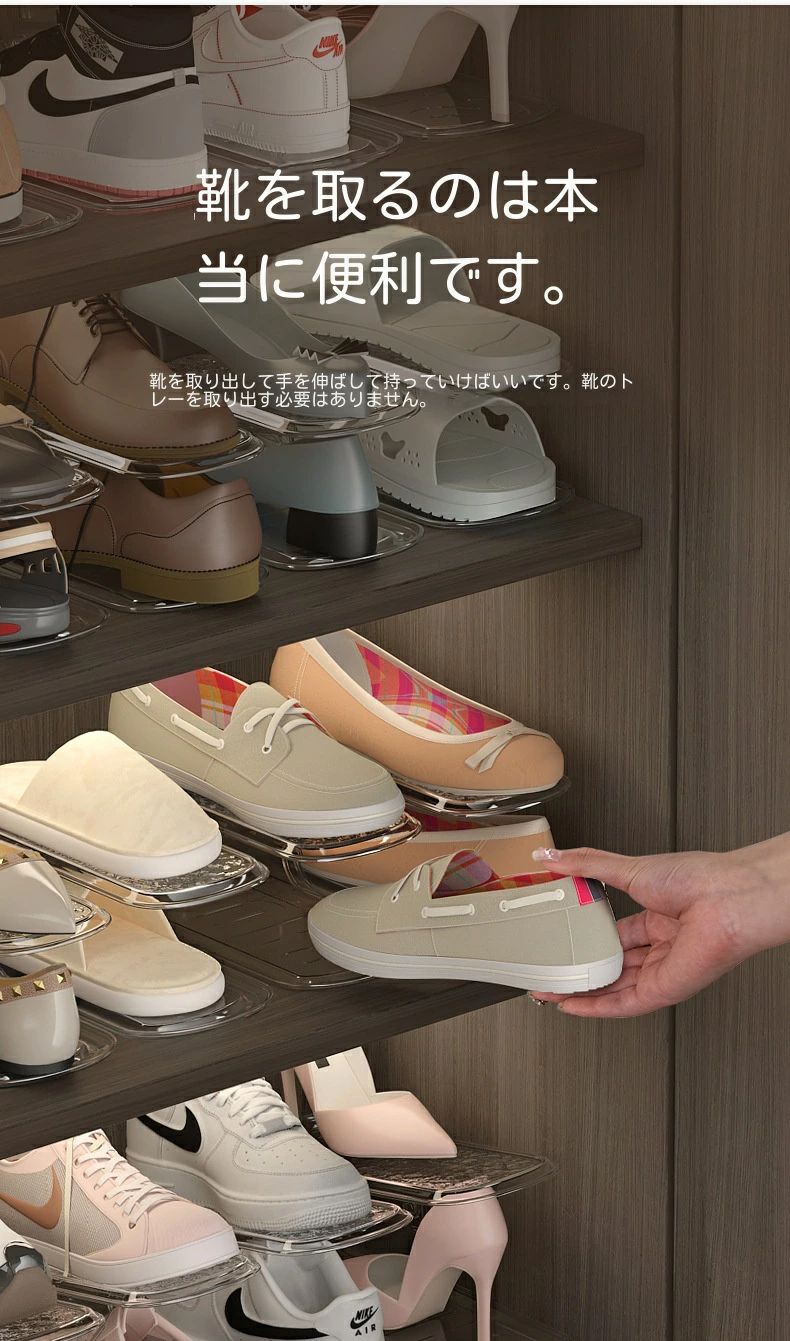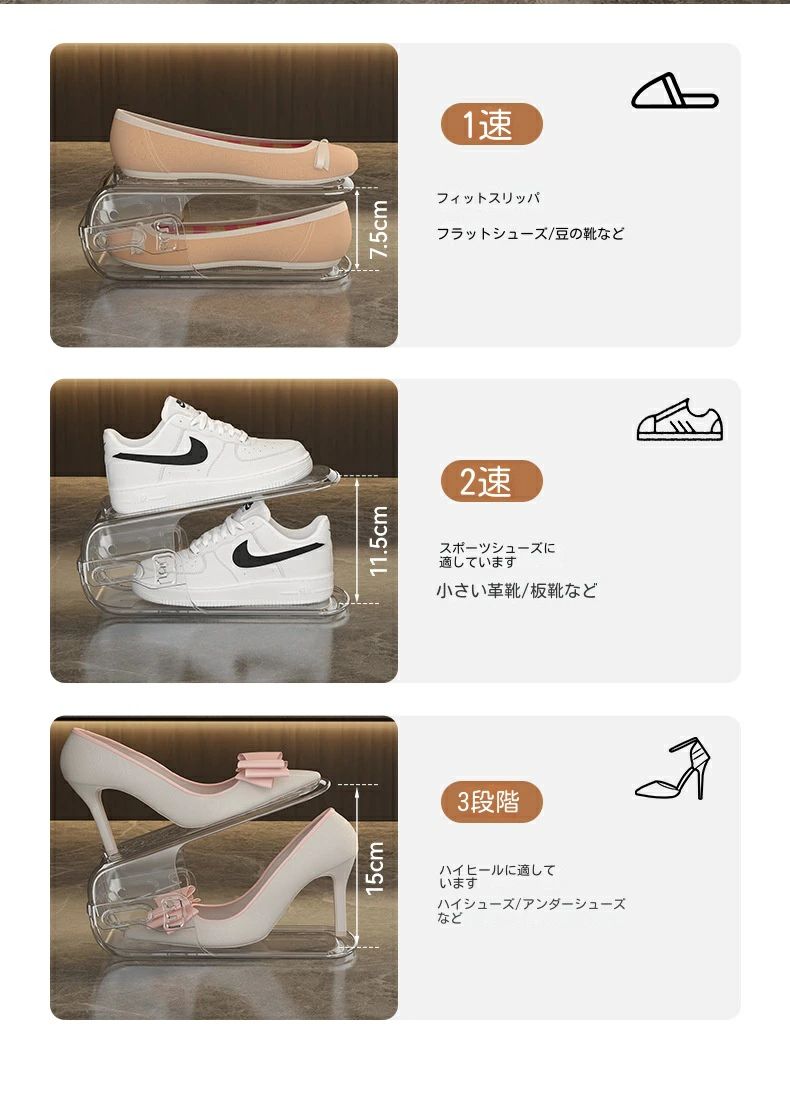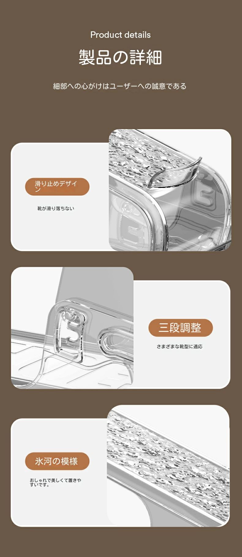 靴ホルダー シューズホルダー シューズラック 収納 下駄箱 省スペース シューズ収納 高さ調整機能 3段階高さ調節可能 滑り止め完備 滑り止めと耐久性ストレー 靴棚 靴入れ 玄関に靴を効率収納 靴収納