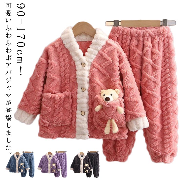 冬 もこもこ 2点セット 長袖 130 100 子供 男の子 パジャマ トップス パンツ セットアップ ルームウェア 足首 ボトムス 部屋着 90 キッズ 110 120 140 150 ソフト